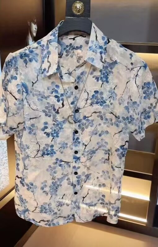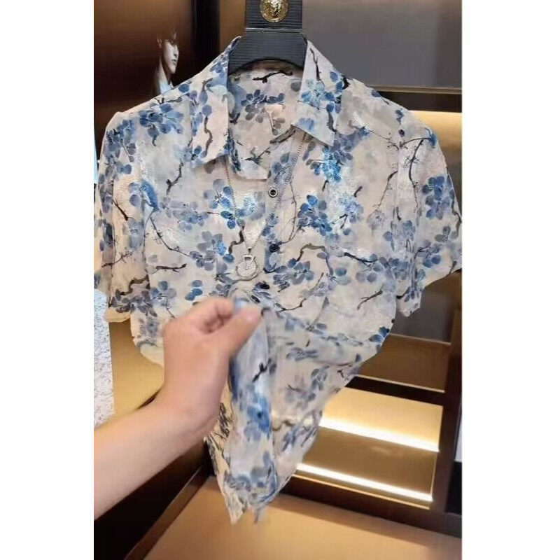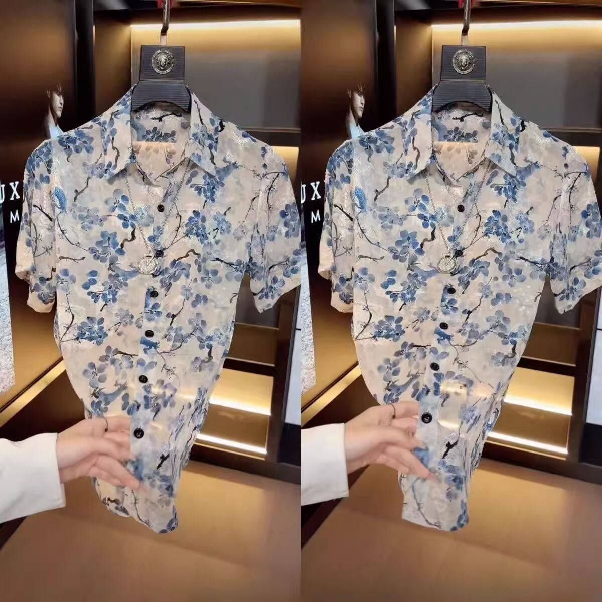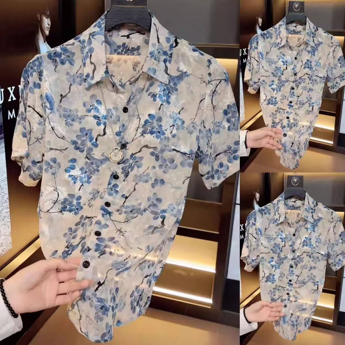 2025 새로운 여름 남성 반팔 라펠 핸섬 셔츠 탑 트렌디 한국 스타일 루즈 캐주얼 슬림 남성 의류스토어 가기