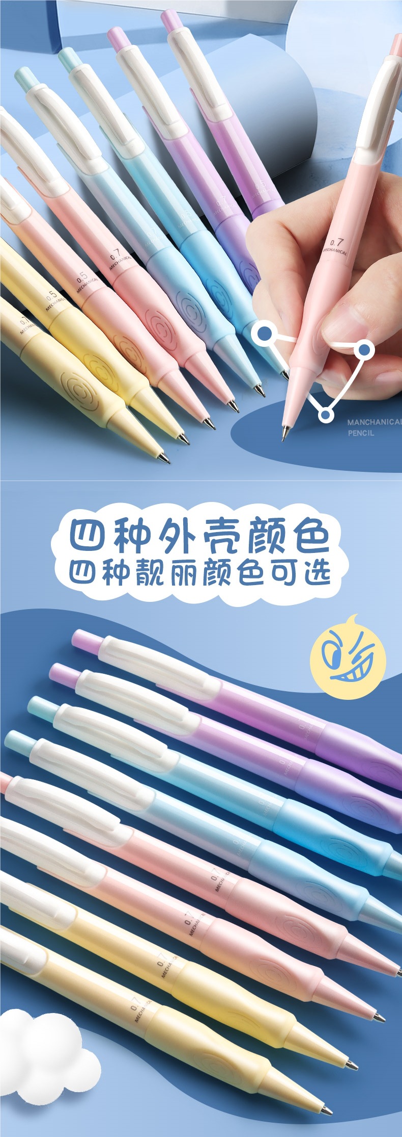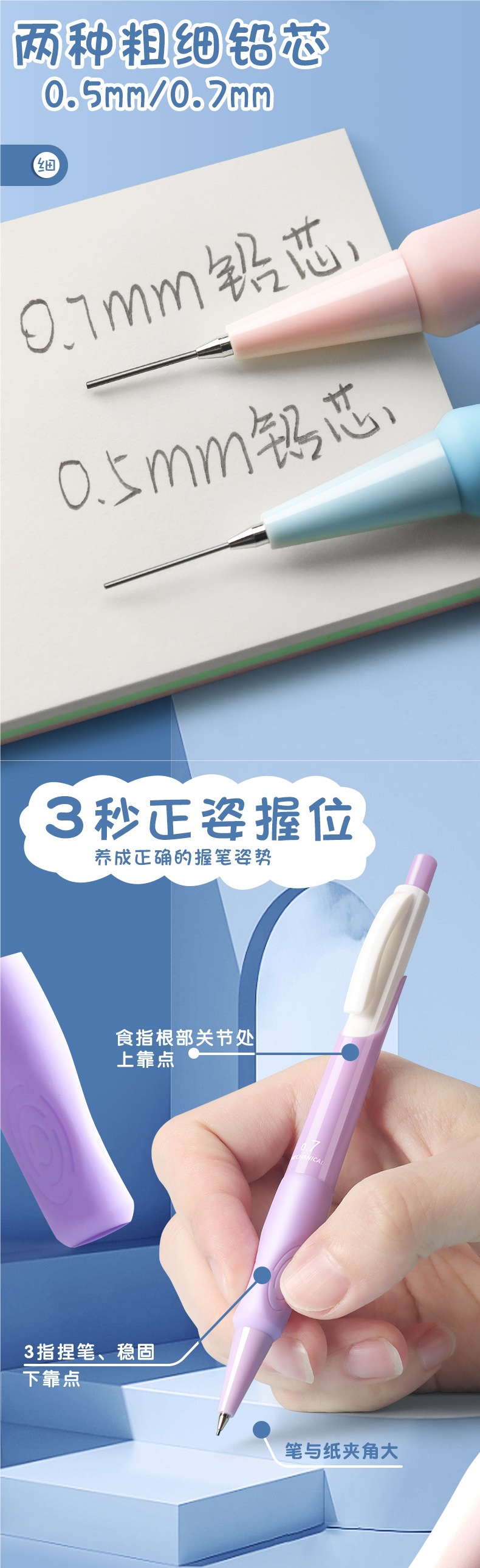 초등학생용 샤프펜슬 0.7 연속심 자동펜연필 0.5심 그립감이 좋고 그립교정이 귀여운 남녀공용