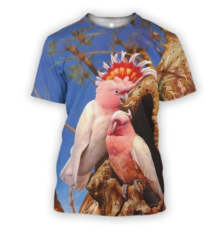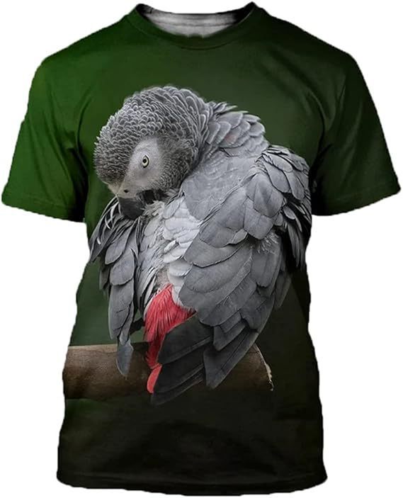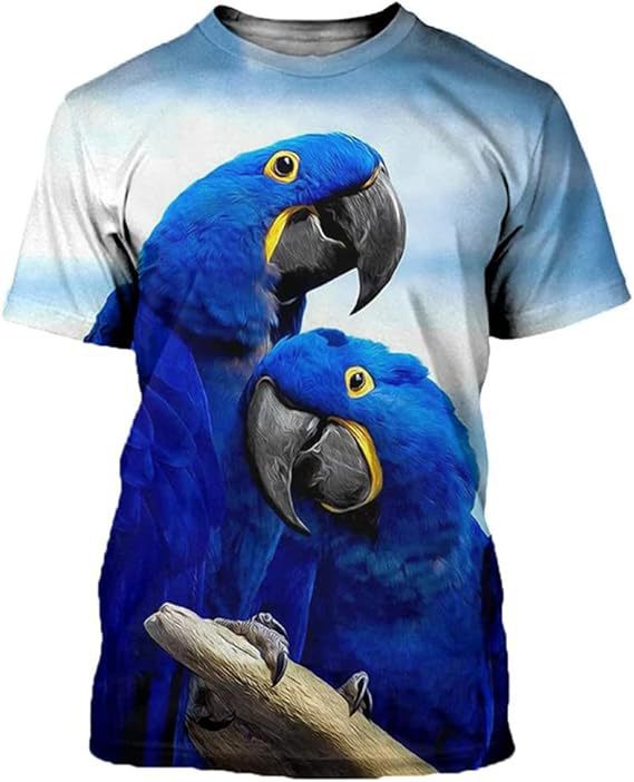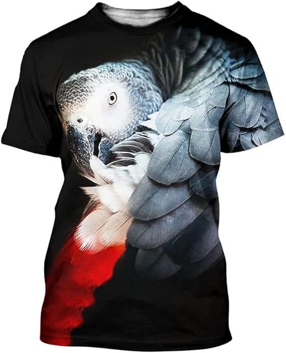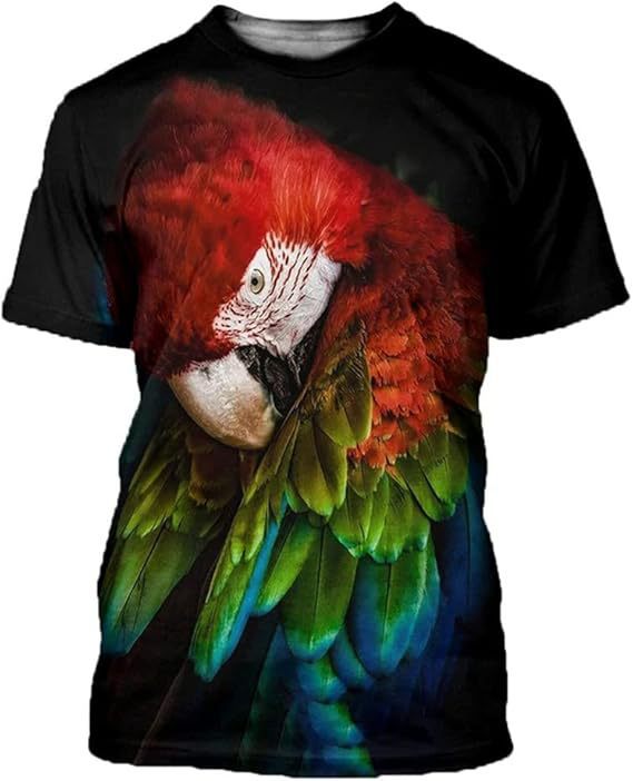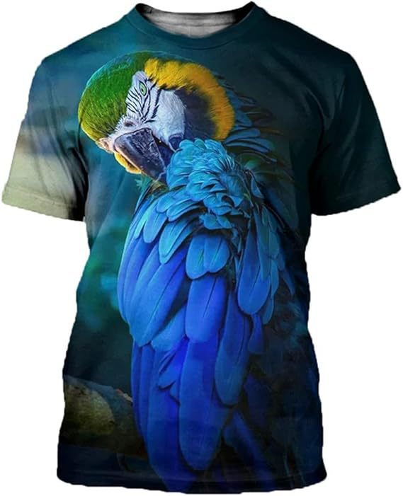 동물 여름 티셔츠 반팔 3D 디지털 인쇄 남자 라운드 넥 반팔 캐주얼 앵무새 눈부신 귀여운스토어 가기