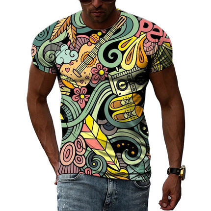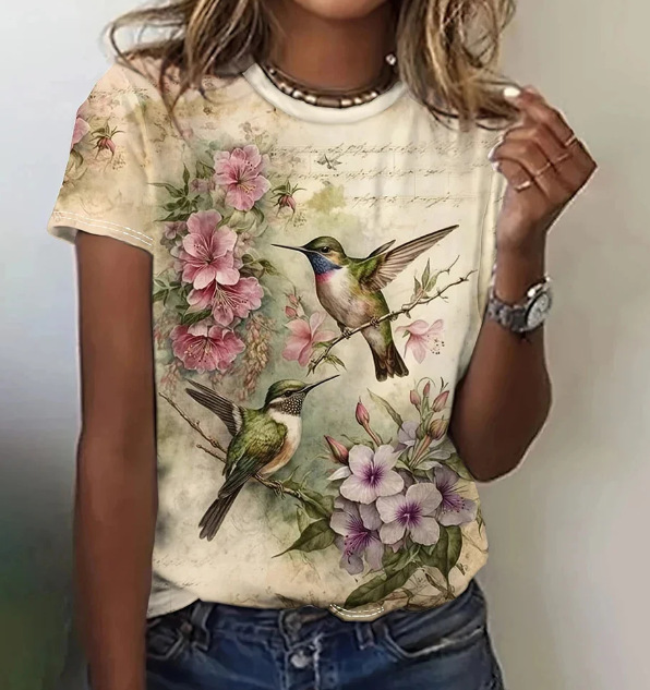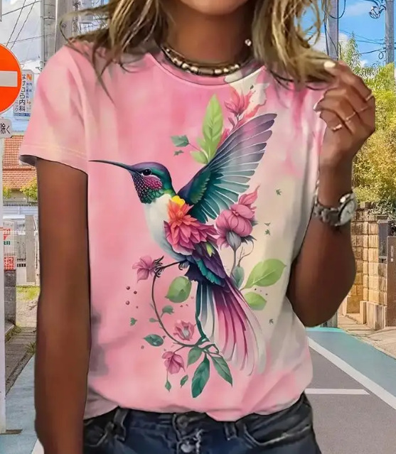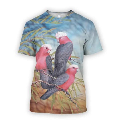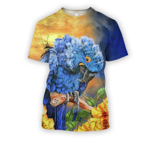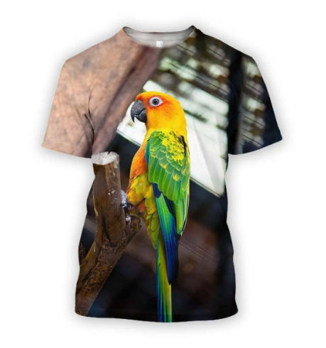 동물 여름 티셔츠 반팔 3D 디지털 인쇄 남자 라운드 넥 반팔 캐주얼 앵무새 눈부신 귀여운