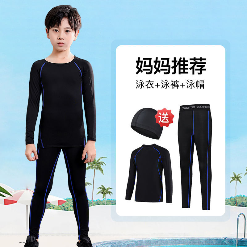 [무료 배송] 소년 소녀용 자외선 차단 긴팔 아동 수영복, 중소형 아동용 스플릿 여름 수영복, 전문 속건 수영복