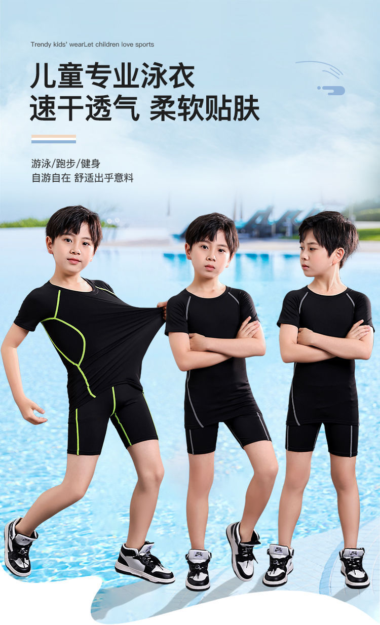 [무료 배송] 소년 소녀용 자외선 차단 긴팔 아동 수영복, 중소형 아동용 스플릿 여름 수영복, 전문 속건 수영복스토어 가기