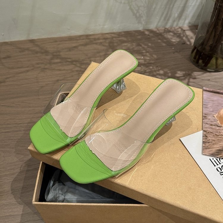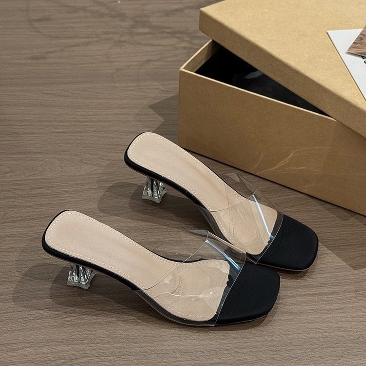 2025년 여름 여성을 위한 새로운 스타일 샌들, 요정 스타일 미드 힐, 투명한 원라인 패션 인터넷 연예인 슈퍼 핫 패션 슬리퍼