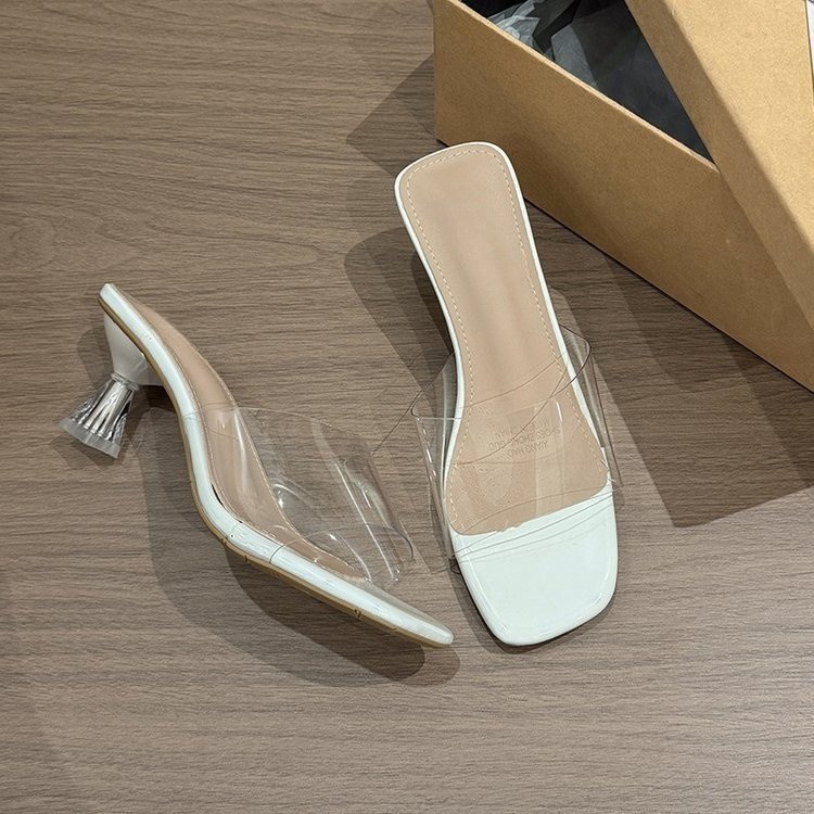 2025년 여름 여성을 위한 새로운 스타일 샌들, 요정 스타일 미드 힐, 투명한 원라인 패션 인터넷 연예인 슈퍼 핫 패션 슬리퍼스토어 가기