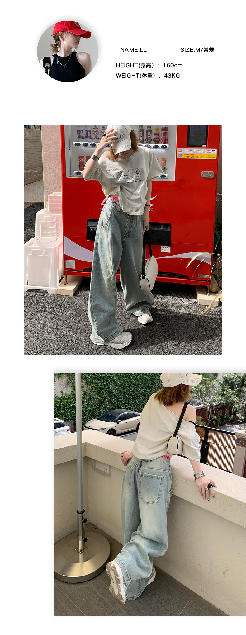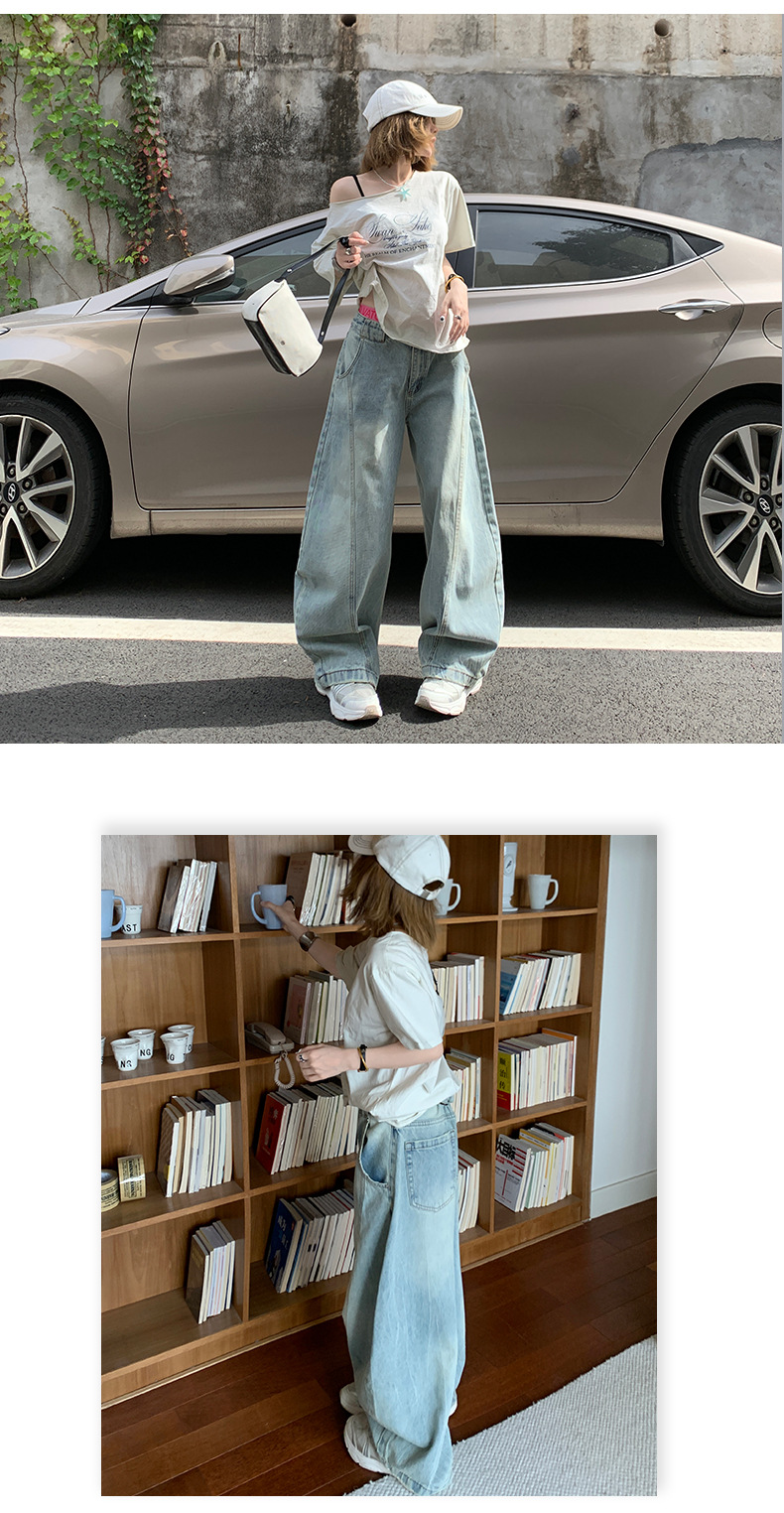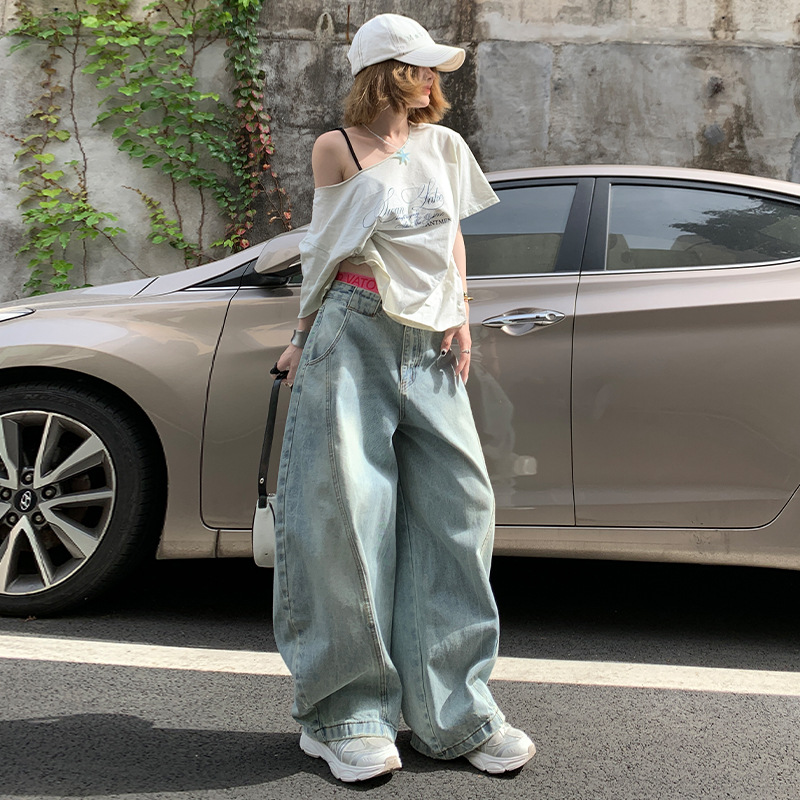 2025 여름 신작 아메리칸 스트리트 스플라이스 채플린 청바지 여성용 루즈한 하이웨이스트 슬리밍 와이드 레그 바닥 길이 바지스토어 가기