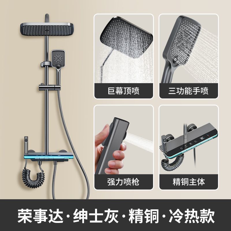 샤워 헤드 풀 세트, 욕실용 샤워 헤드 세트, 일정한 온도 및 가압식 전체 구리 샤워 헤드 세트