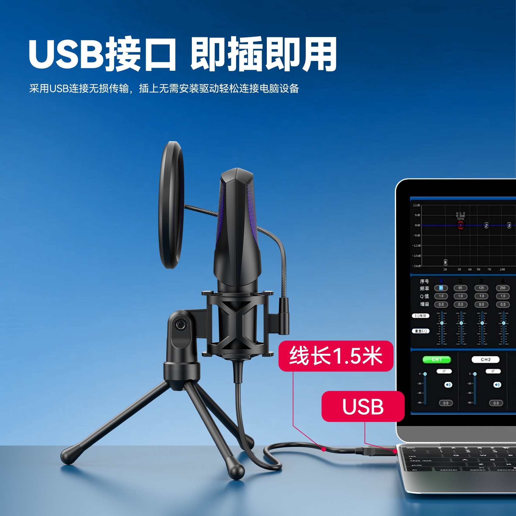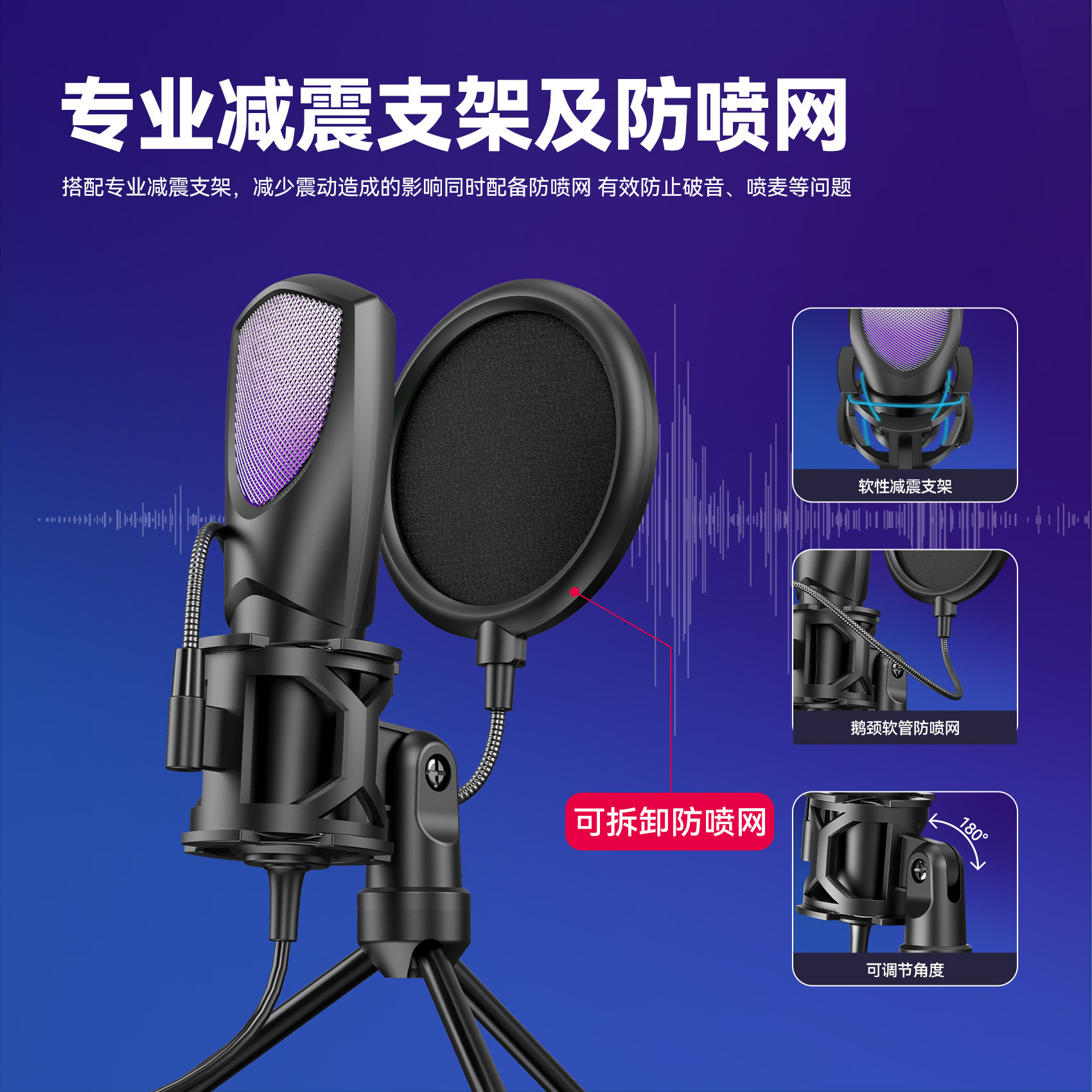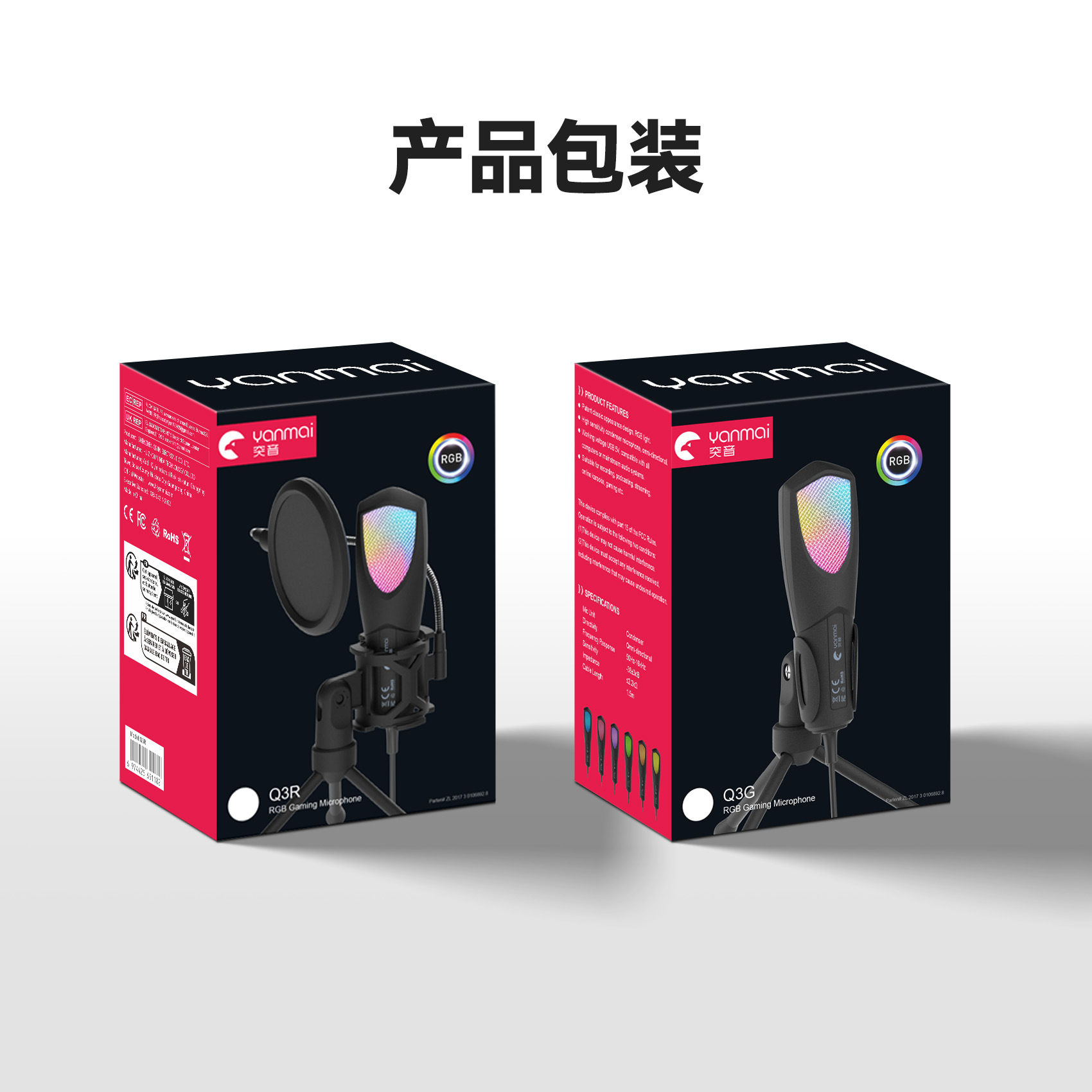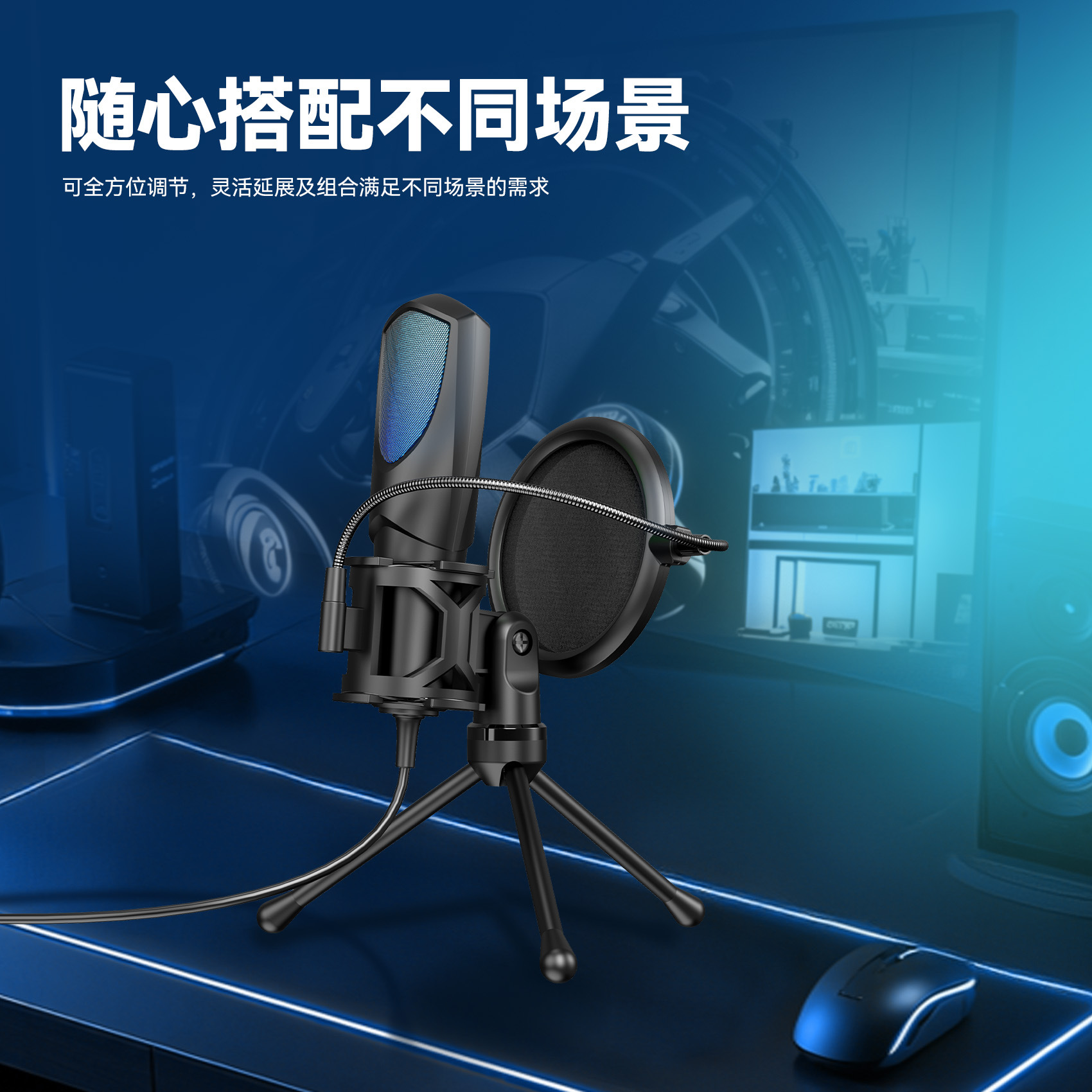 2025 신제품 크로스보더 무역 전용 RGB 게이밍 e스포츠 컴퓨터 데스크탑 콘덴서 마이크 Q3R/Q3G스토어 가기