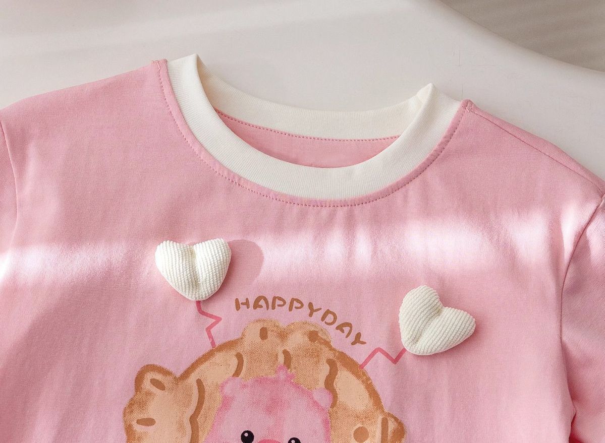 여자 달콤한 반팔 티셔츠 여름 새 아기 귀여운 만화 인쇄 입체 사랑 대비 색상 반팔 탑