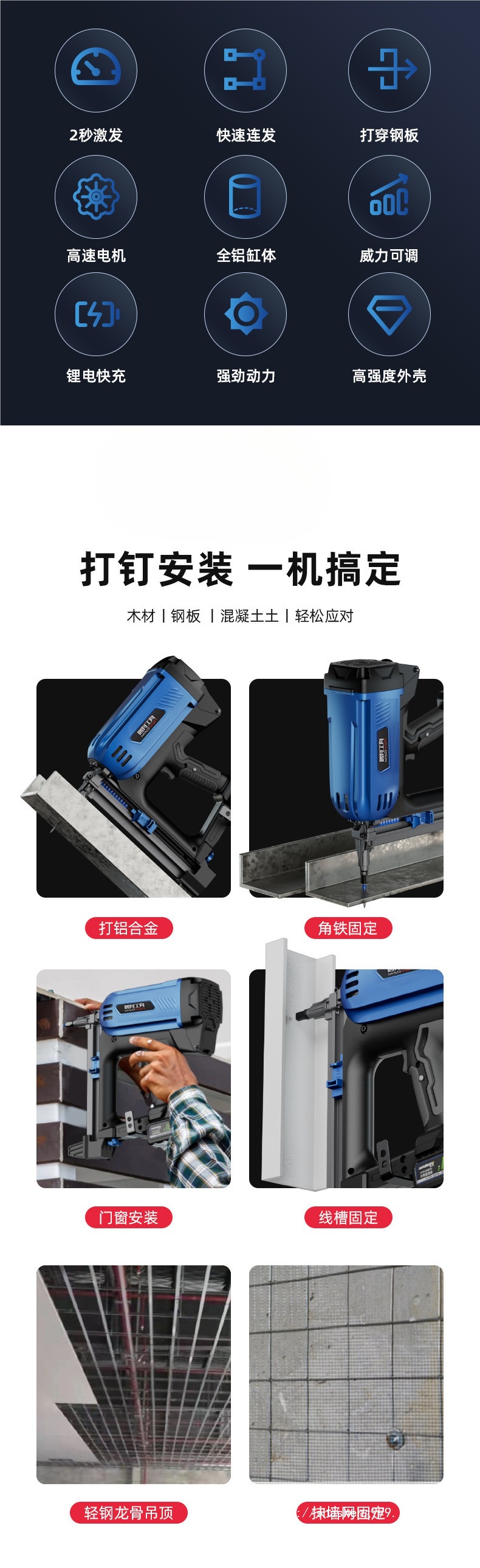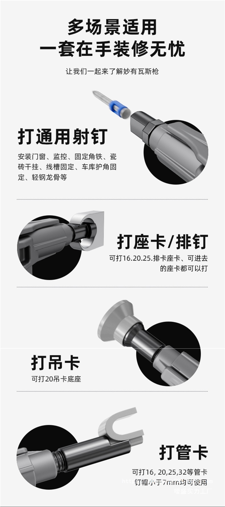 가스못총, 배관공, 콘크리트전기못총, 공압못총, 시멘트벽강못총, 내구성