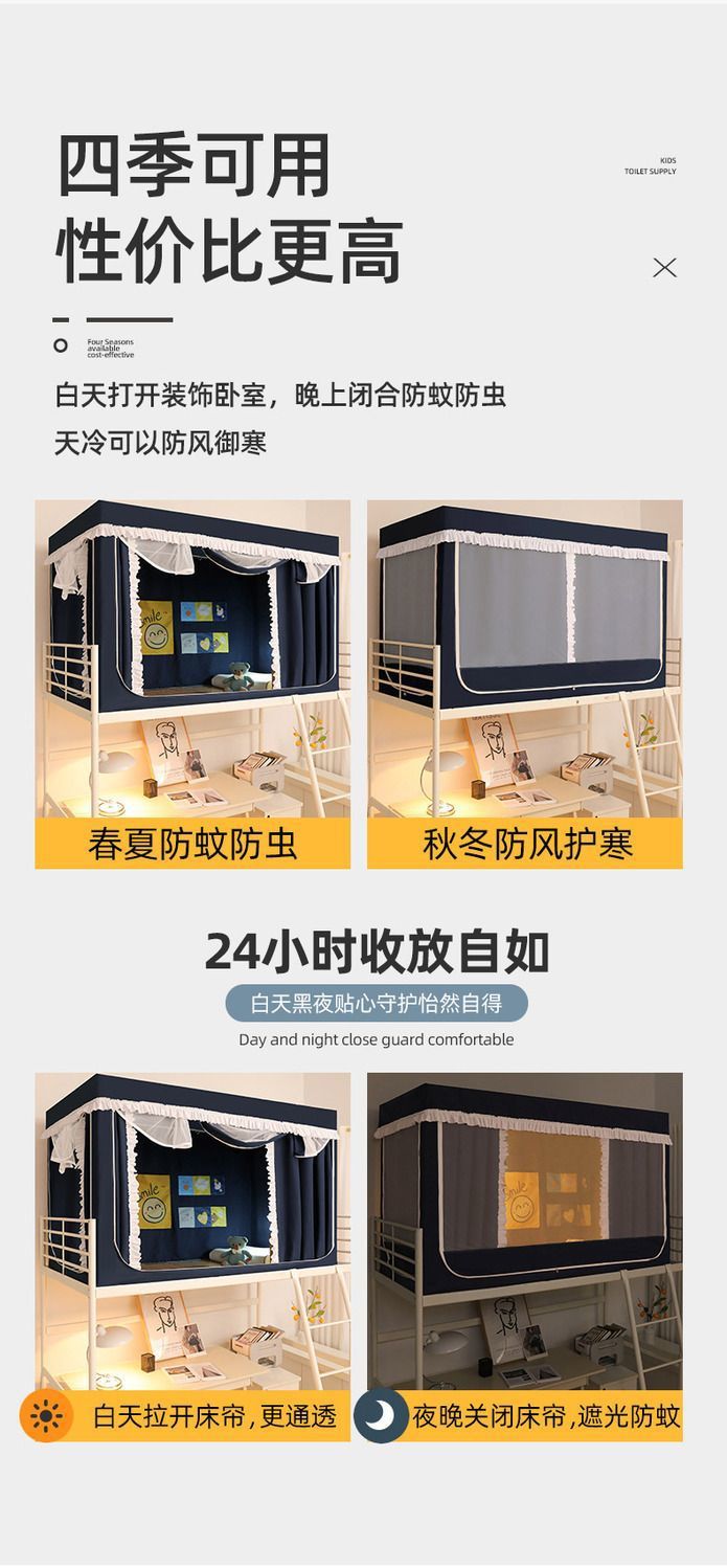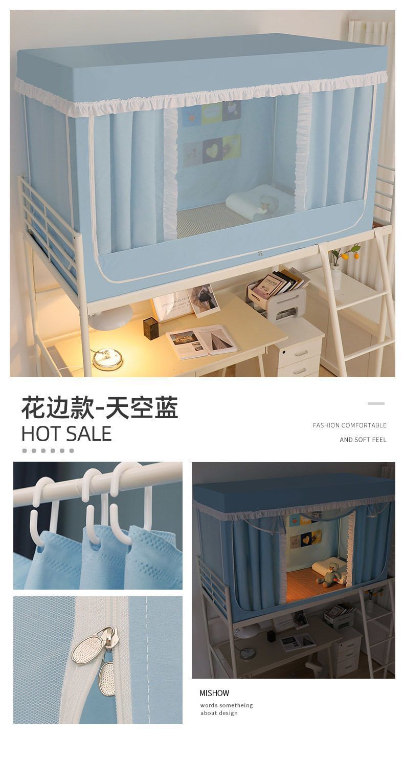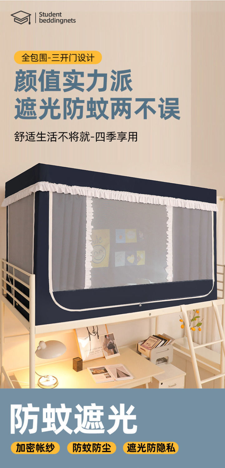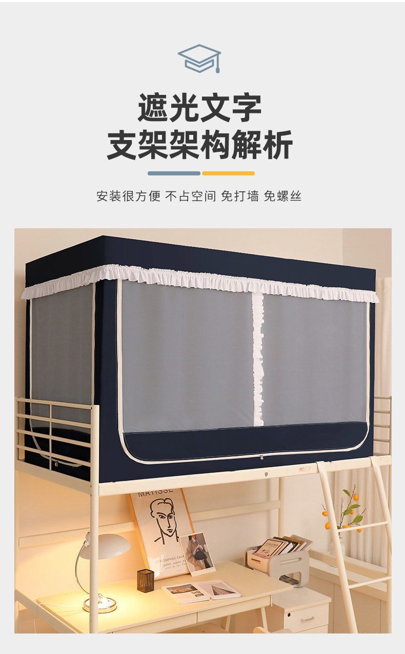 학생 기숙사 모기장 및 침대 커튼 일체형 차광 천 이층 침대 범용 대학 기숙사 특수 상단 침대(스탠드 포함)스토어 가기