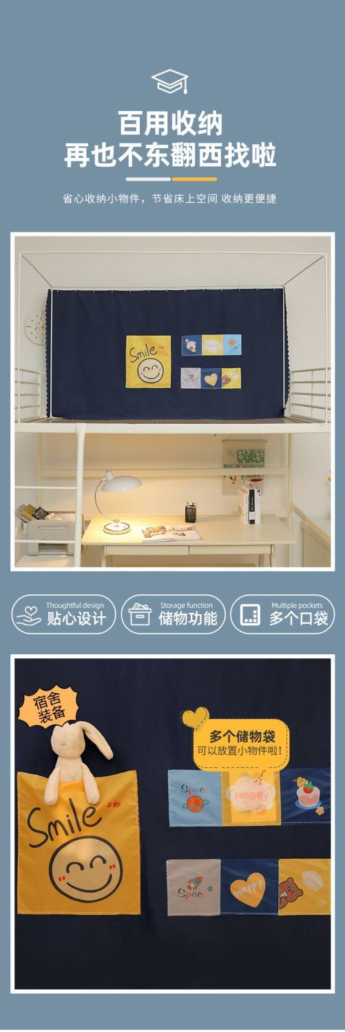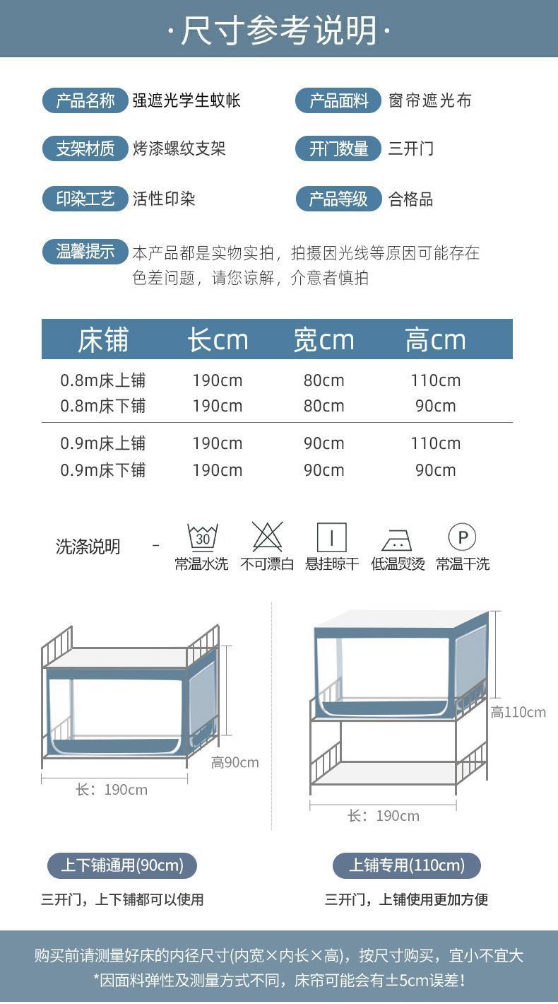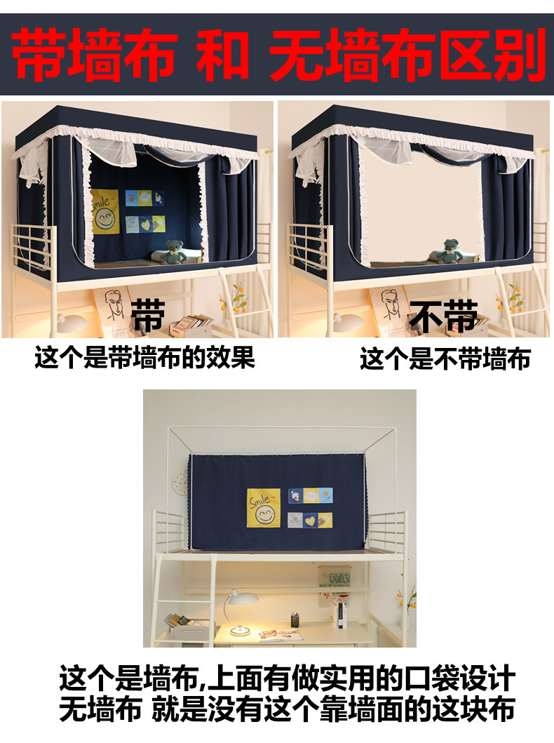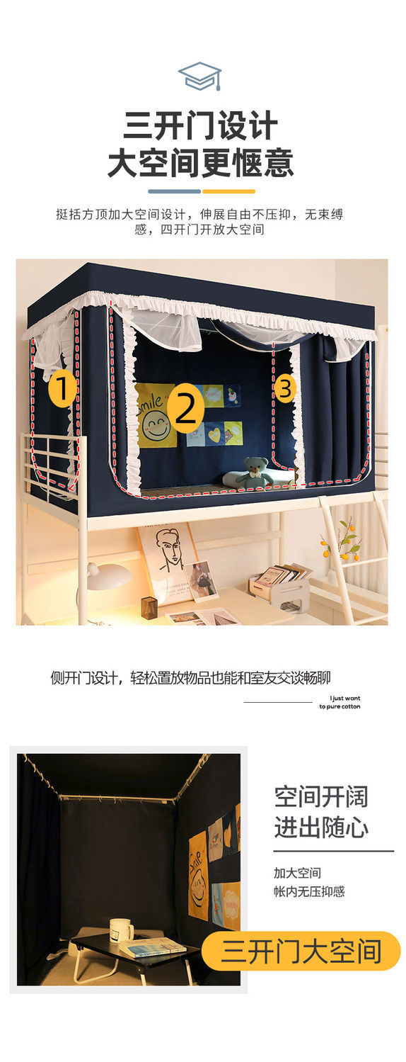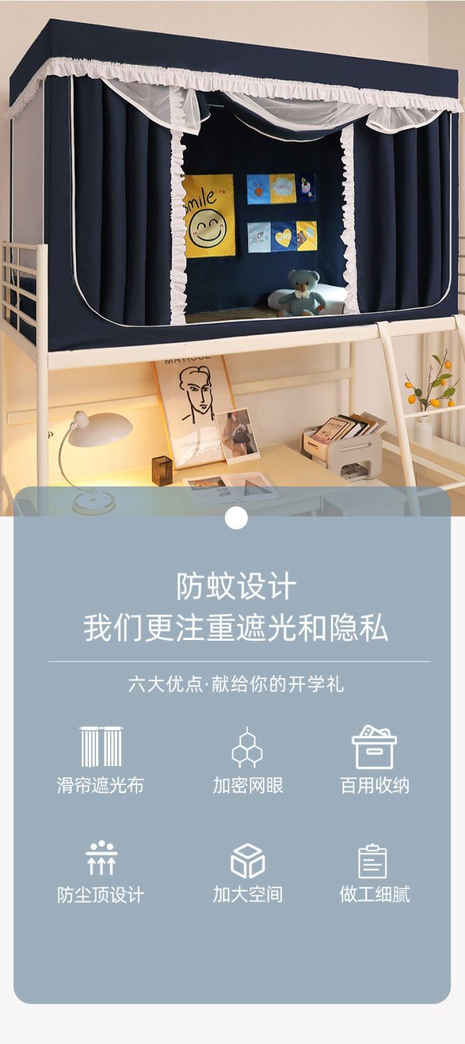 학생 기숙사 모기장 및 침대 커튼 일체형 차광 천 이층 침대 범용 대학 기숙사 특수 상단 침대(스탠드 포함)스토어 가기