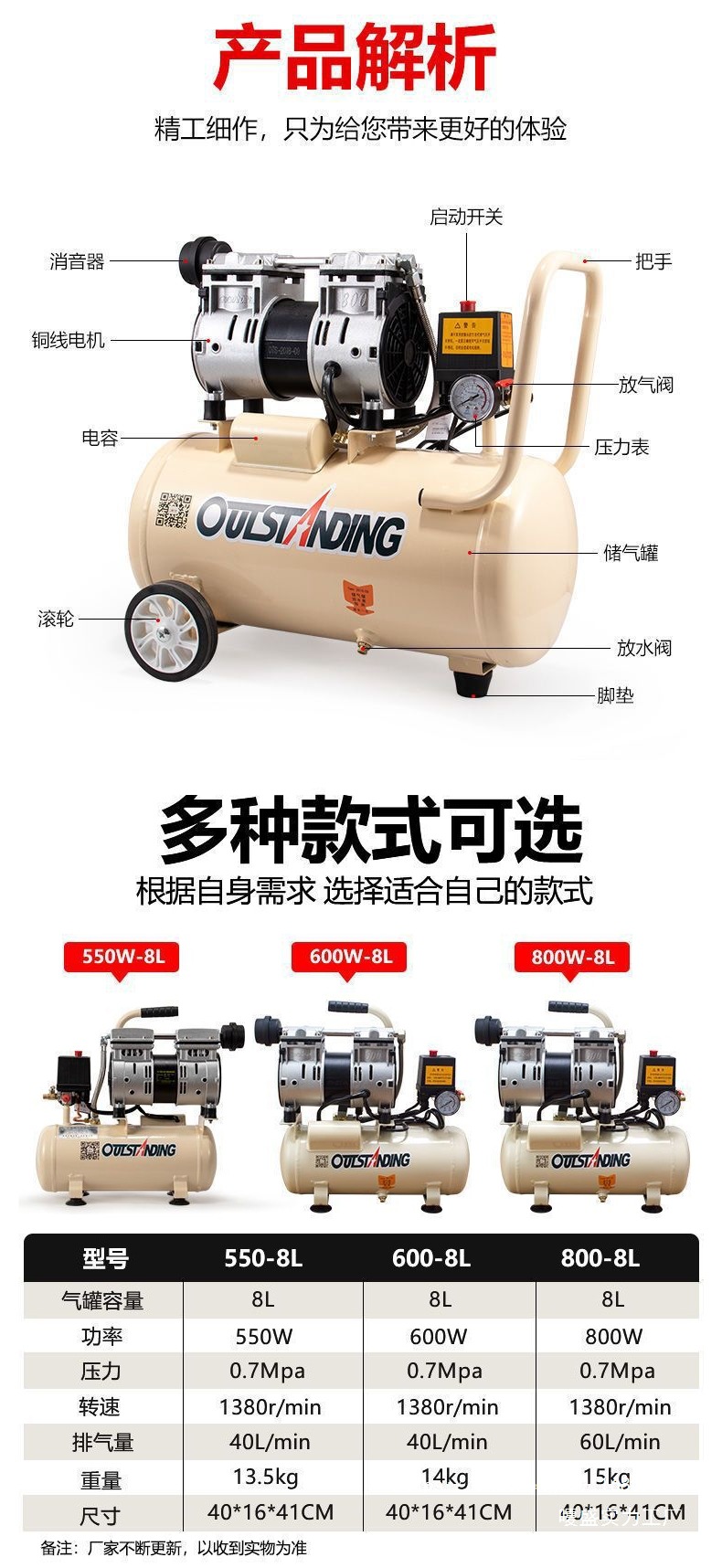 ATUS 공기 펌프 공기 압축기 소형 공기 압축기 풍선 오일 프리 자동 220V 목공 스프레이 페인트 공기 펌프