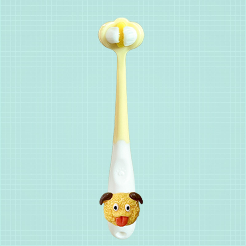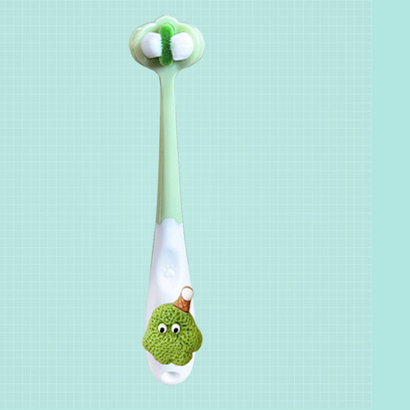 3~12세 유아를 위한 부드러운 모를 갖춘 어린이용 삼면 칫솔, 특수 치아 보호대, 모피 괴물 만화 삼두 칫솔