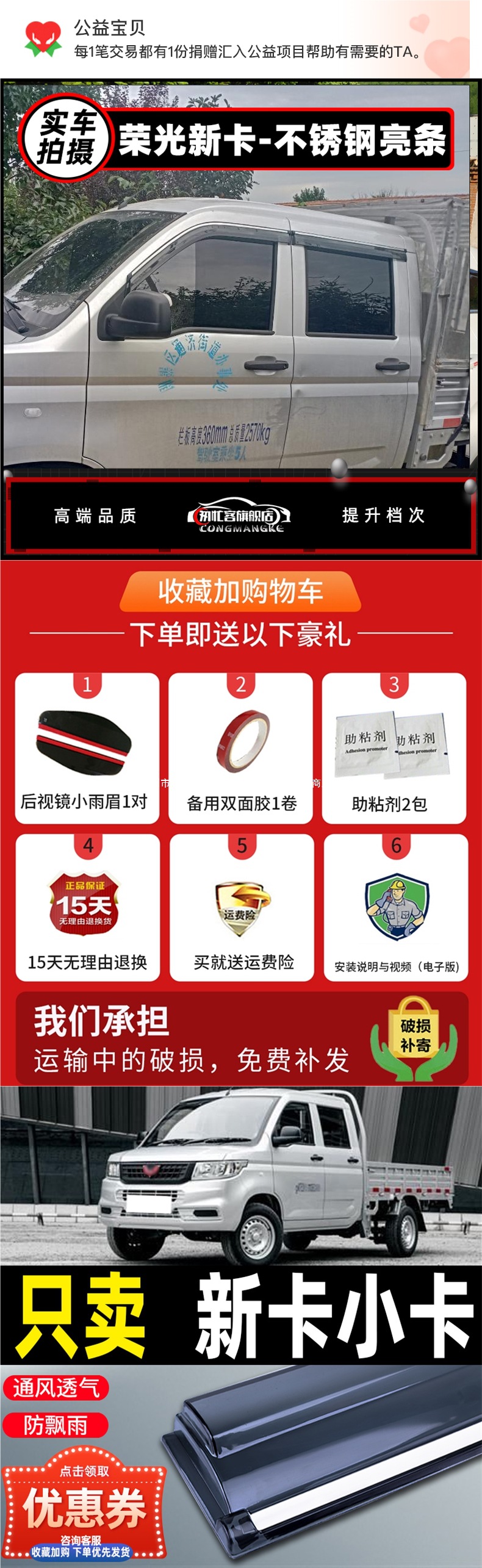 Wuling Rongguang 신형 카드 이중열 비 차단 소형 카드 자동차 방수 스트립 신형 카드 단일 열 비 차단 창문 레인 브로우 Kunming스토어 가기