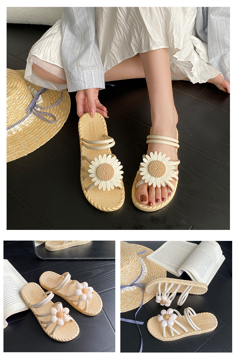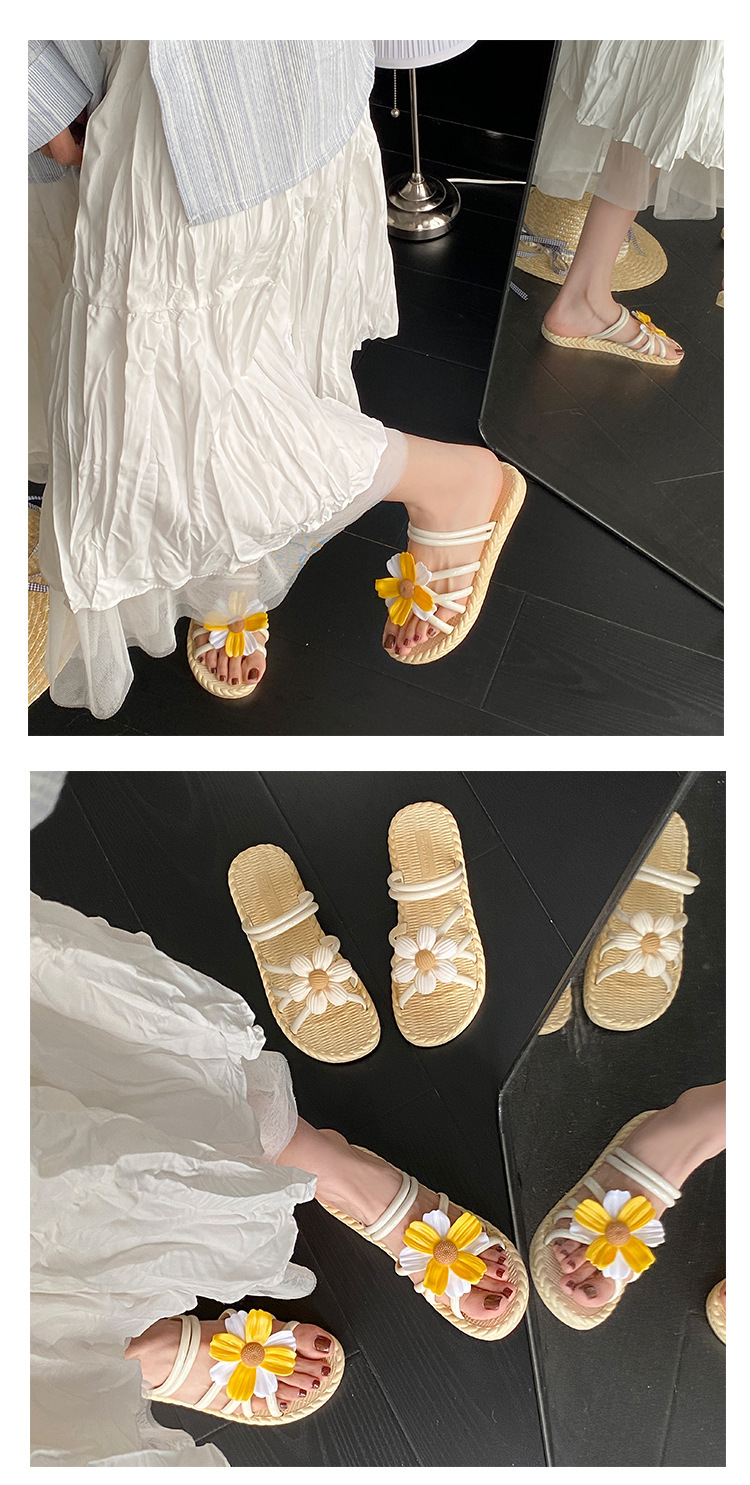 새로운 패션 꽃 여성 신발 여름 밀짚 슬리퍼 민족 스타일 로마 신발 비치 슬리퍼 투웨어 신발 샌들스토어 가기