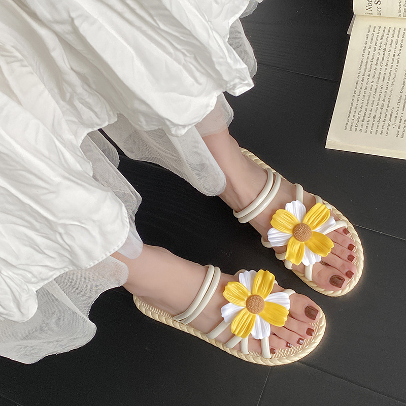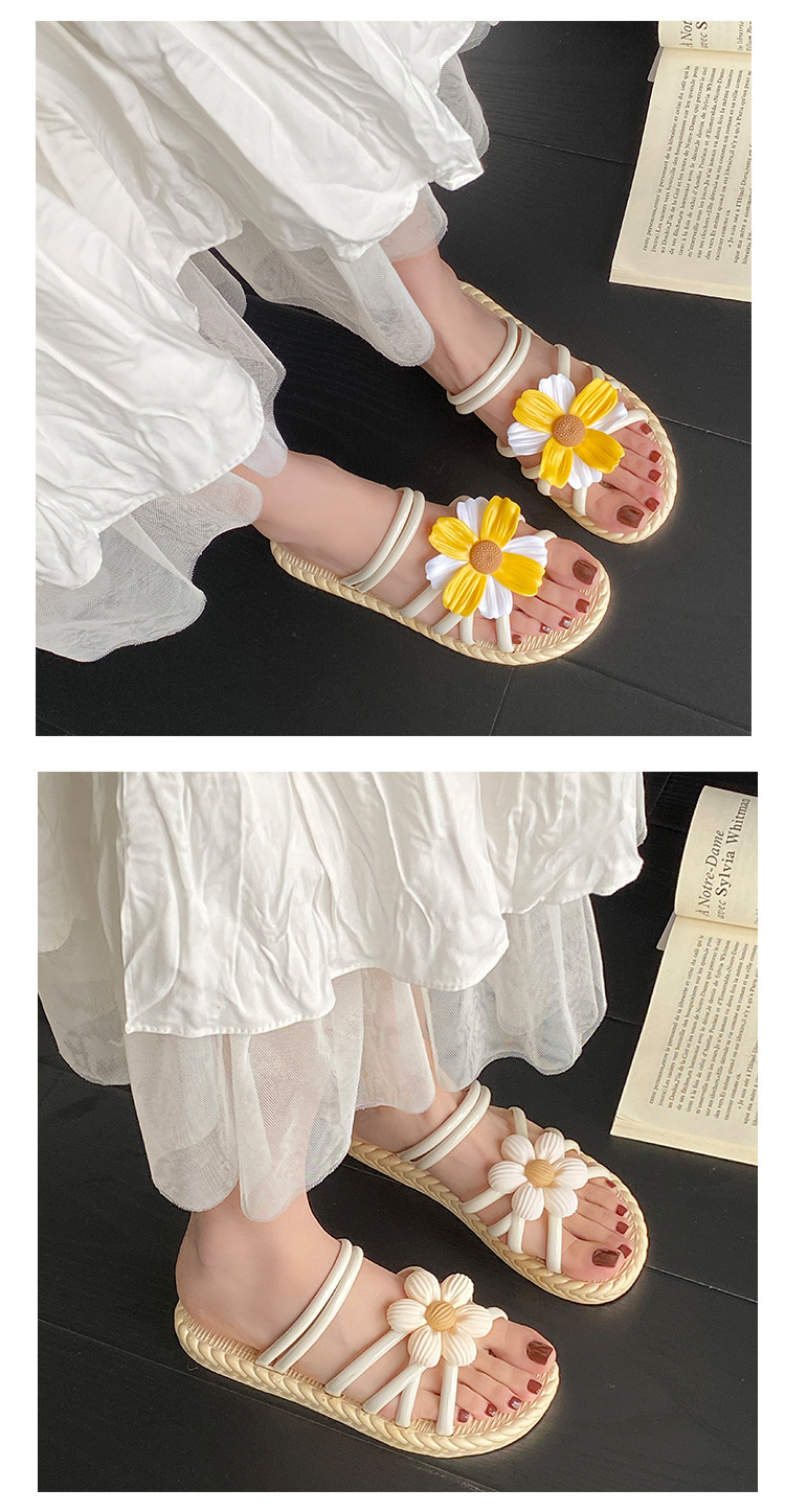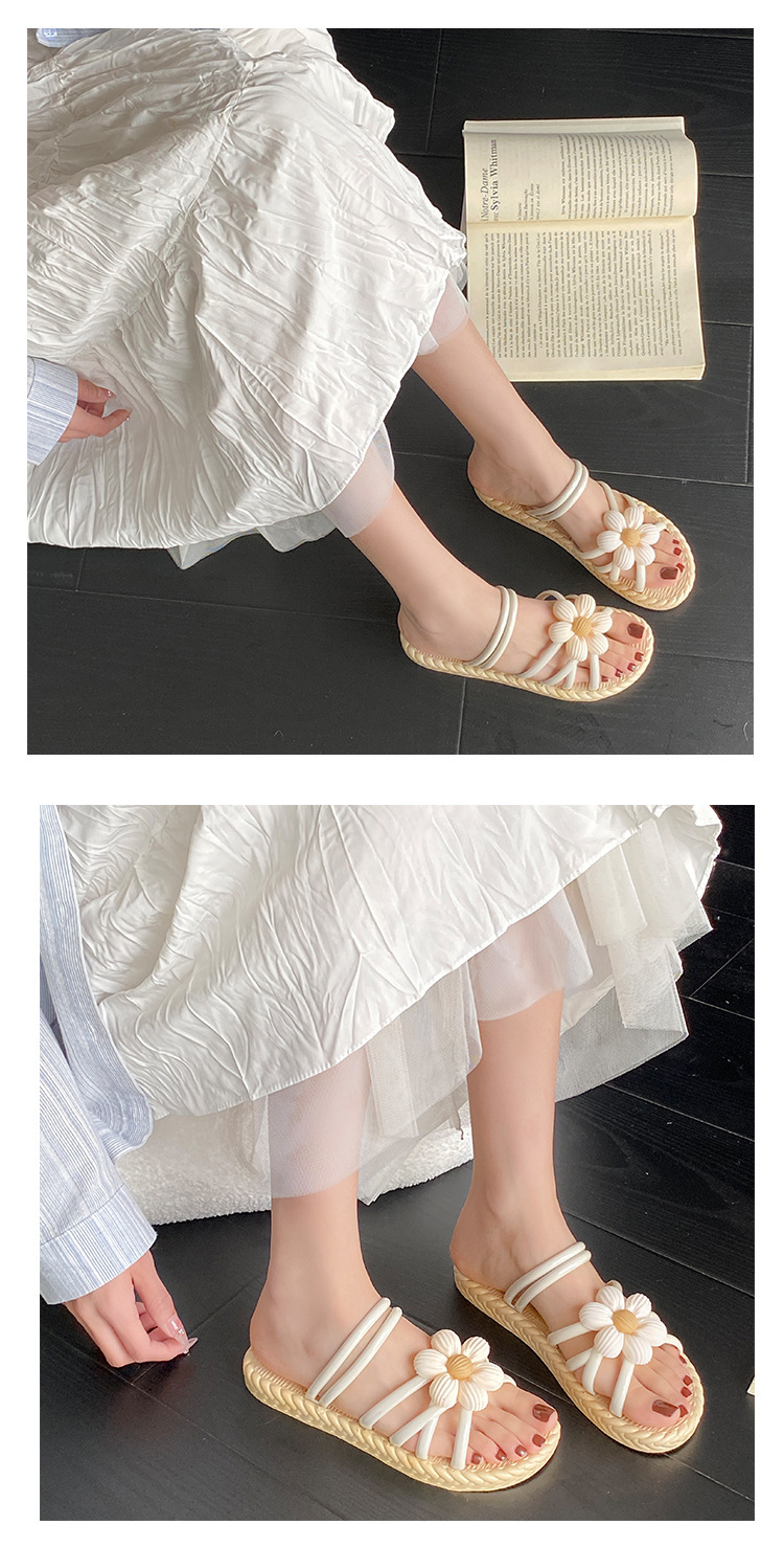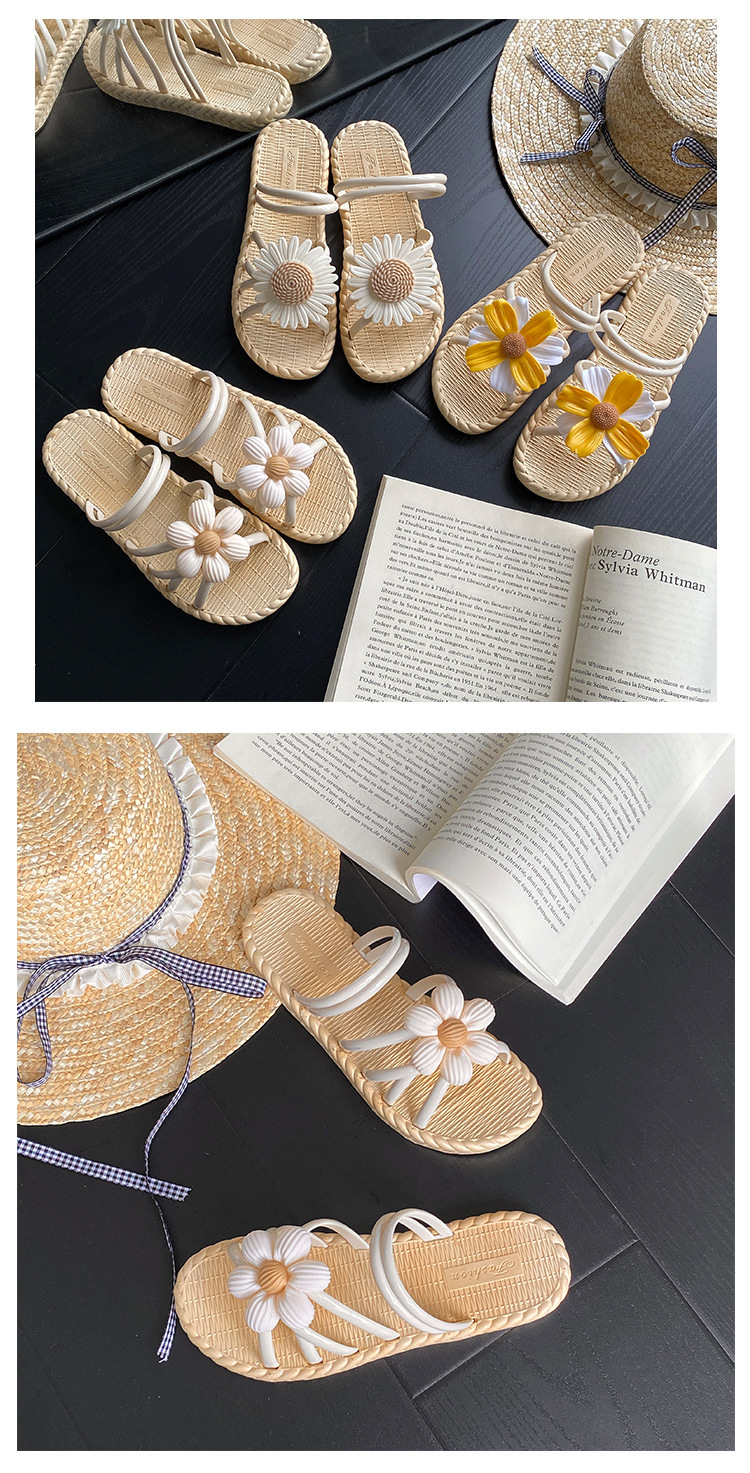 새로운 패션 꽃 여성 신발 여름 밀짚 슬리퍼 민족 스타일 로마 신발 비치 슬리퍼 투웨어 신발 샌들