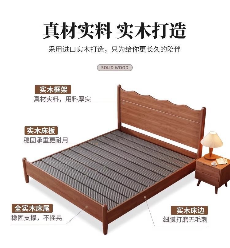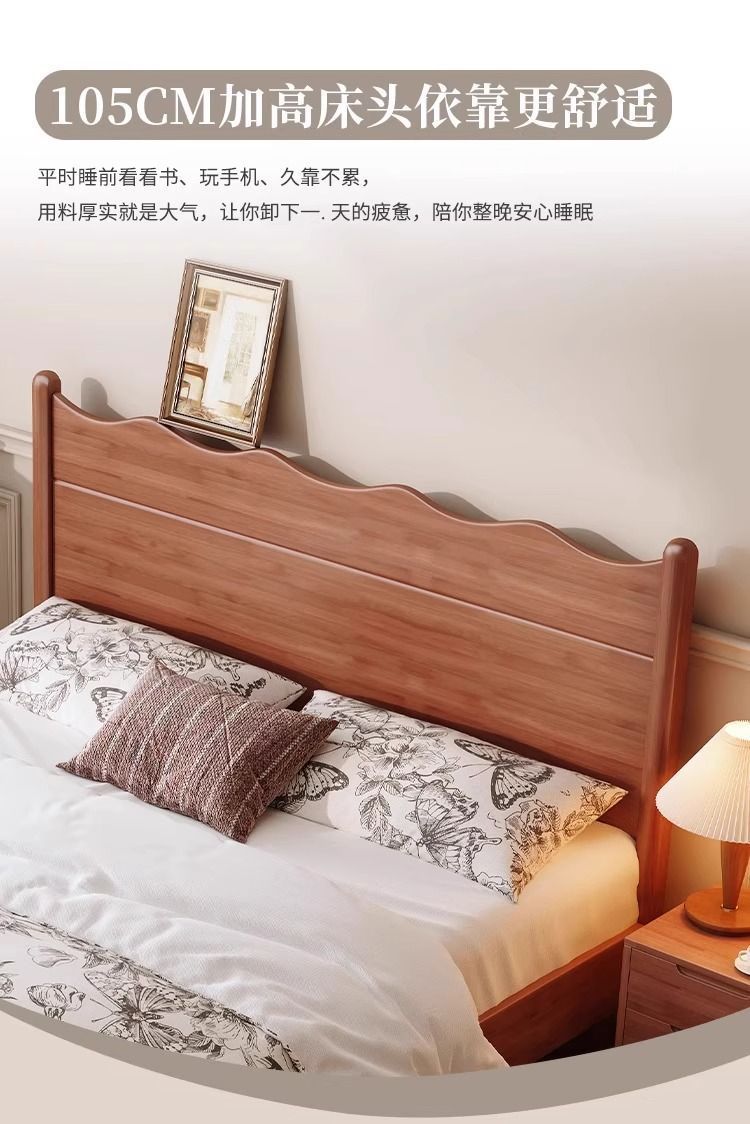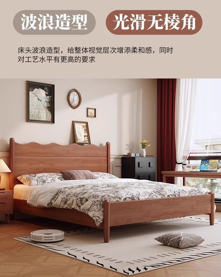 북유럽 골동품 물결 모양의 원목 침대 프렌치 레트로 더블 침대 모던 마스터 침실 1.5 노르딕 1.8 체리 컬러 B&B