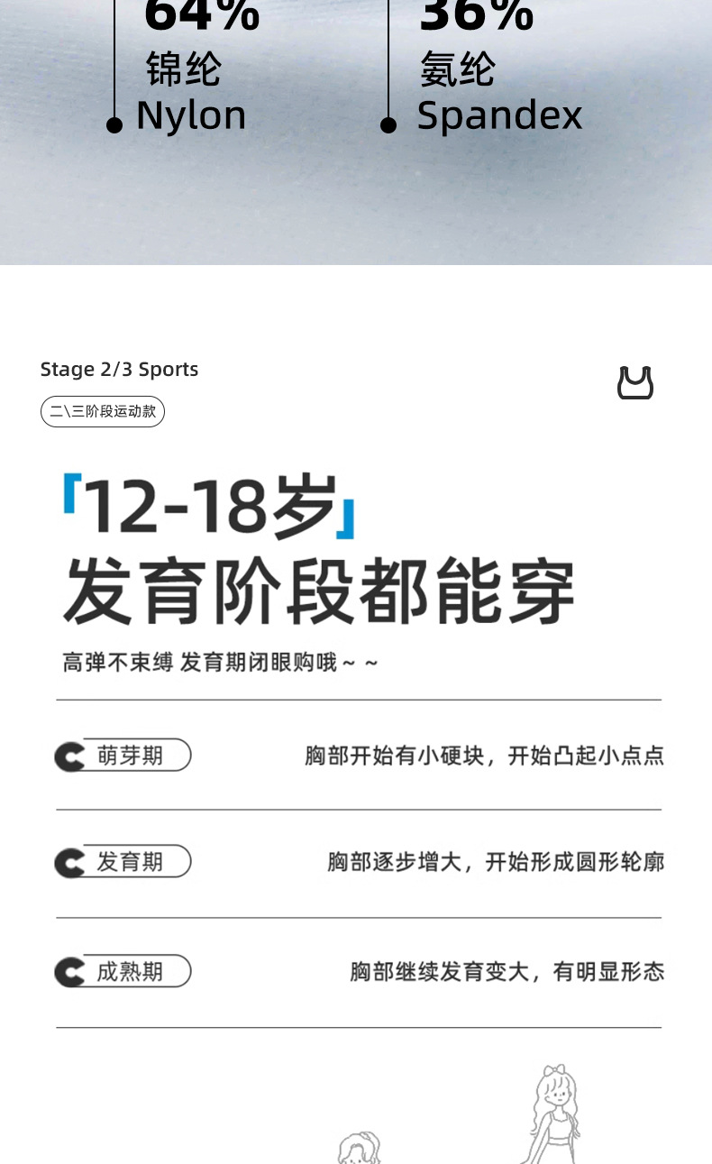 Yu Zhaolin 발달기 소녀 속옷 사춘기 학생 중학교 및 고등학교 원활한 스포츠 충격 방지 소녀 조끼스토어 가기