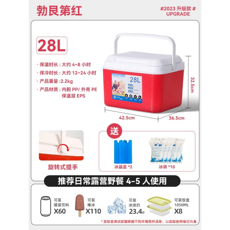 • 28L 걸쭉한 레드 [24시간 오래 지속되는 보냉] 무료 얼음 결정 상자*2+얼음주머니*10♢