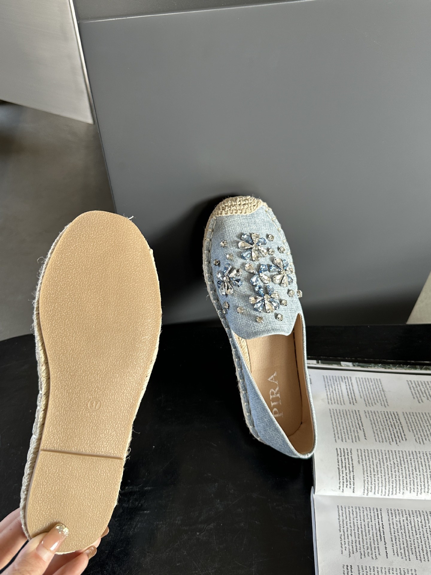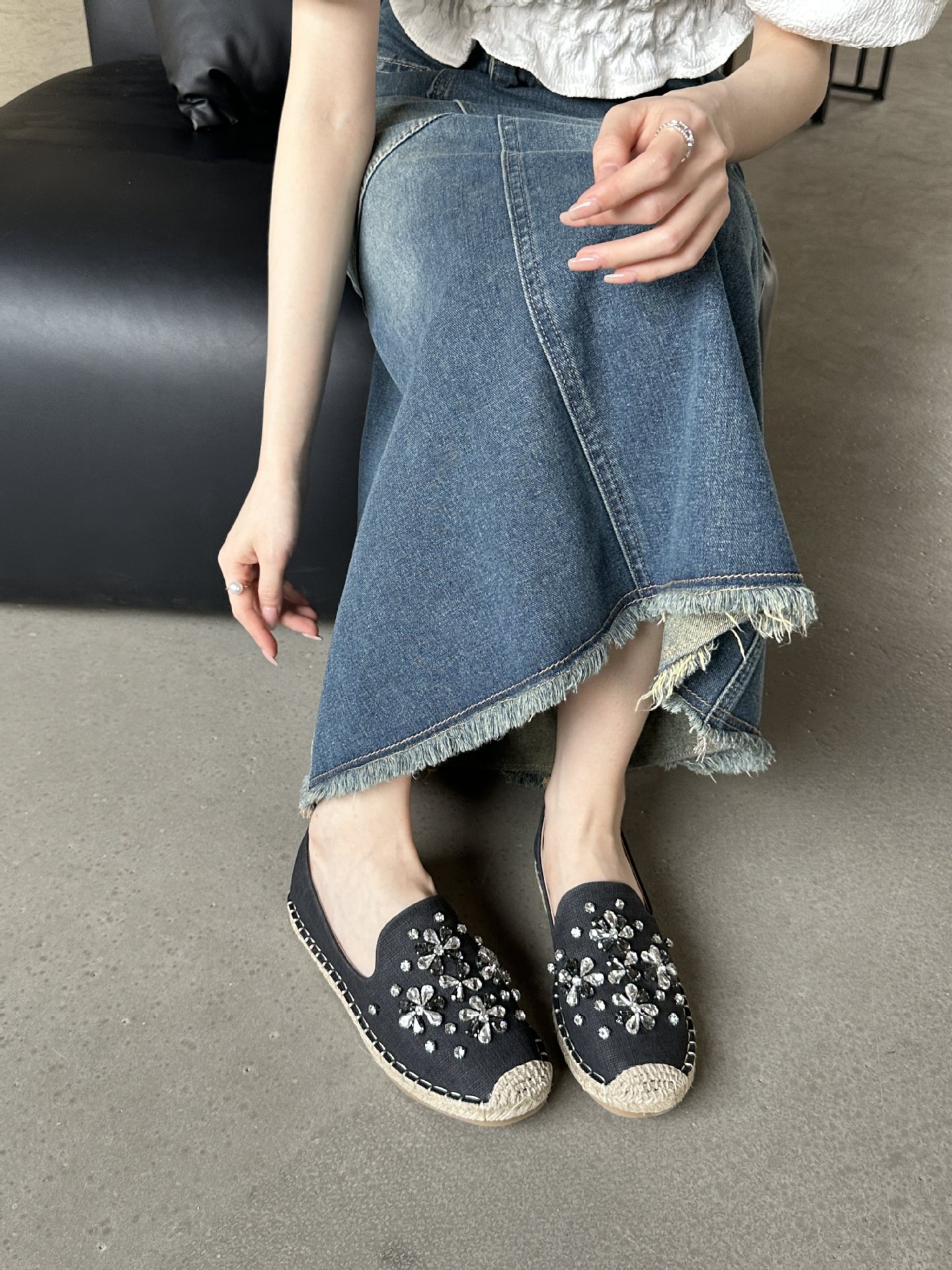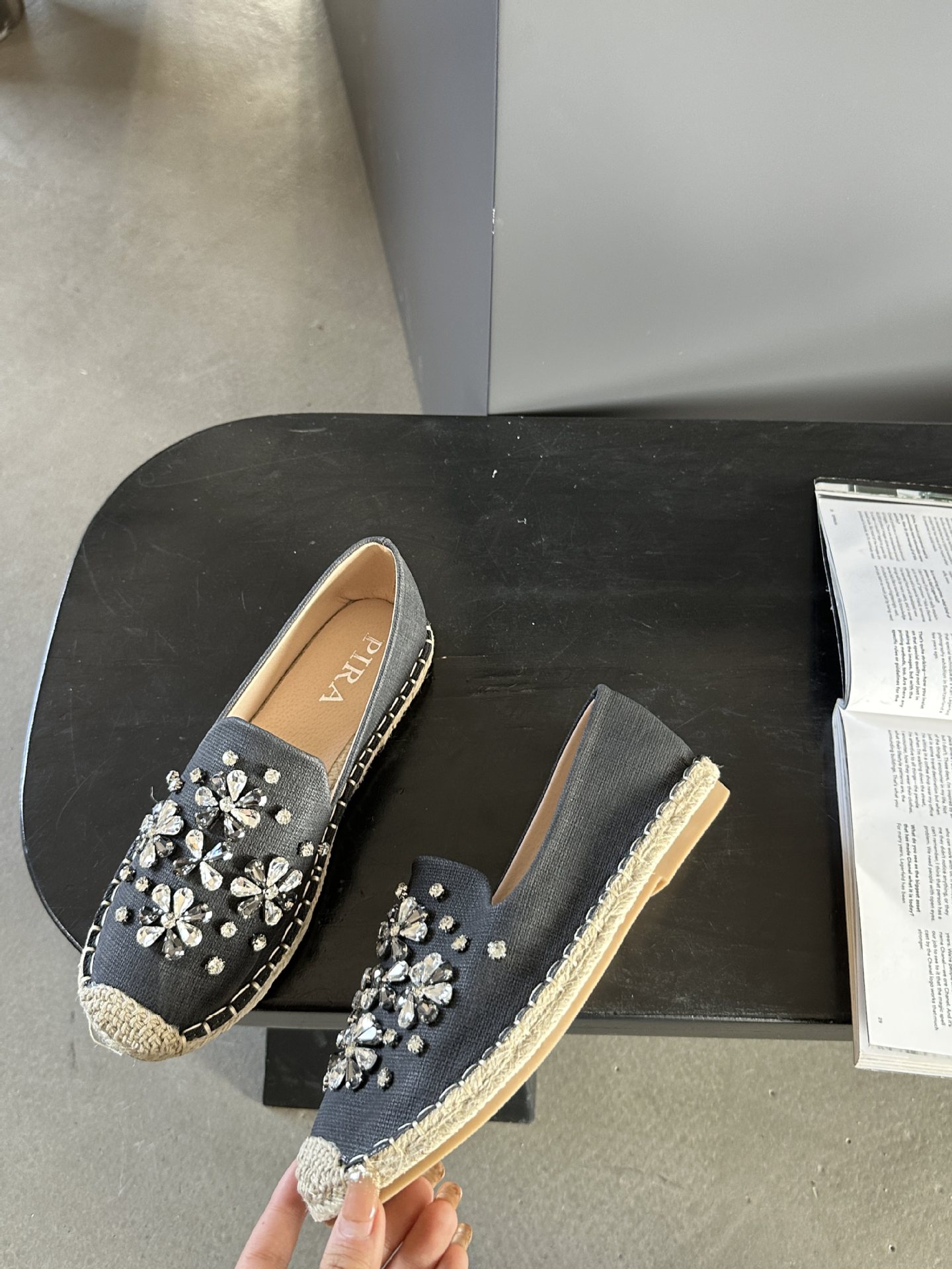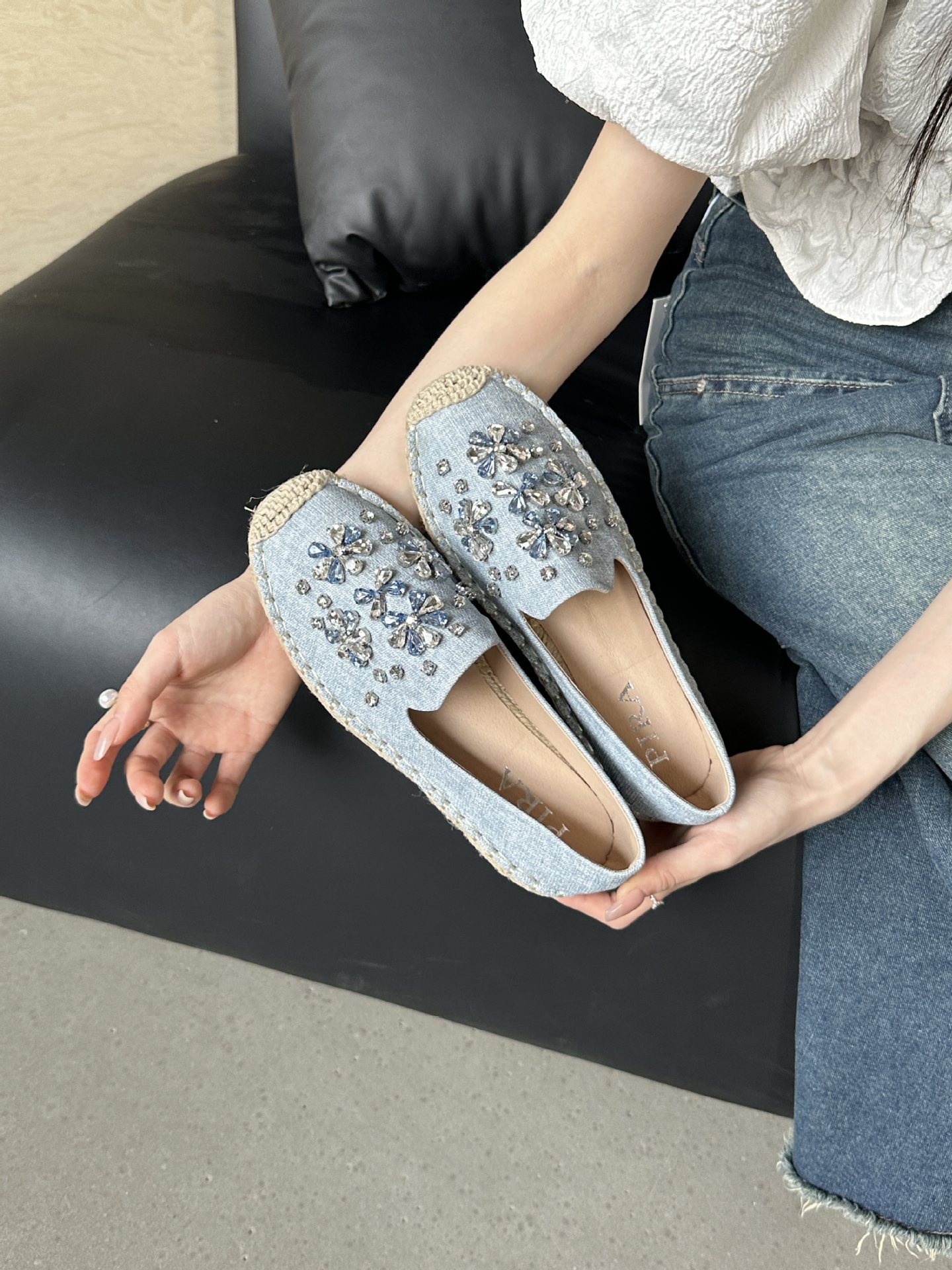 2025 가을 새로운 스타일 라인스톤 밀짚 어부 신발 여성 싱글 슈즈스토어 가기