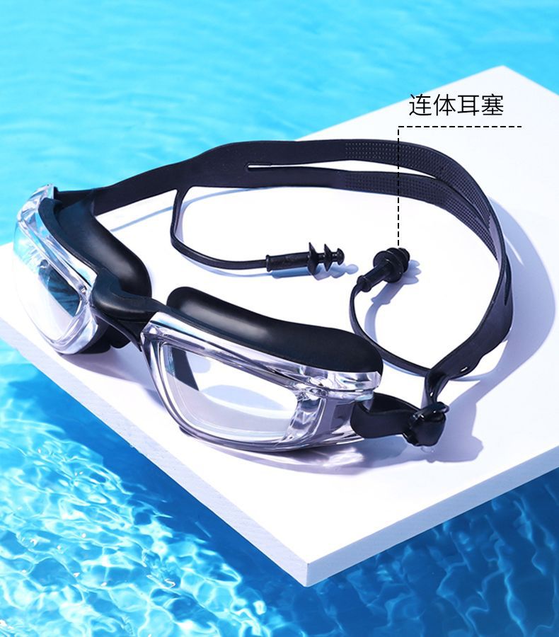 • 블랙 앤 그레이 그라데이션 반팔 + 수영 트렁크 + 수영 고글
