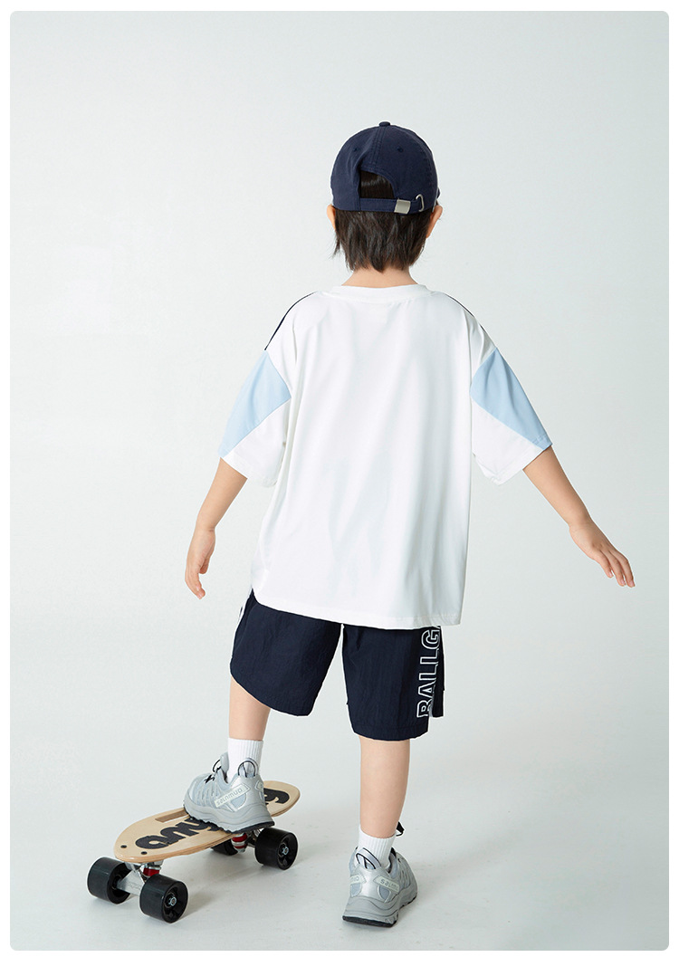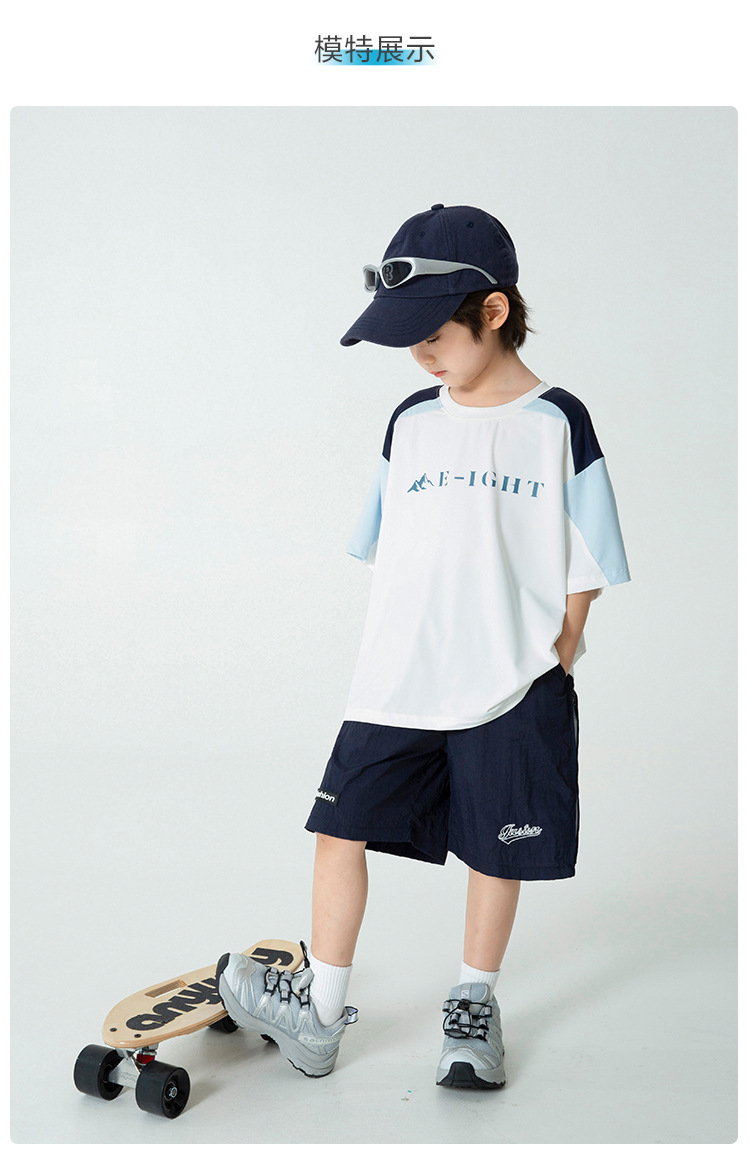 Haima의 2025 새로운 여름 스타일 소년 스플 라이스 시원한 반팔 티셔츠 스포츠 여름 옷 중대형 어린이 반팔스토어 가기
