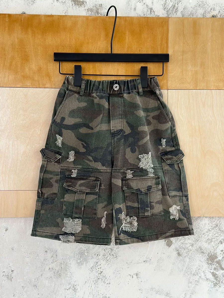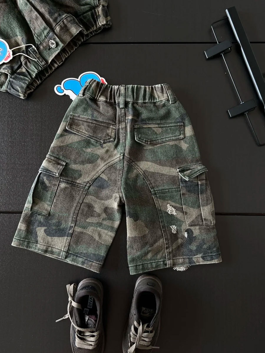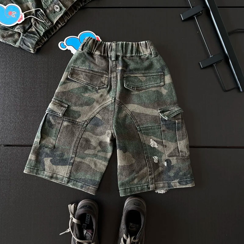 남아용 바지, 아동용 여름옷, 2025년 신형 핸섬 스타일 얇은 위장 반바지, 여아용 패셔너블한 작업복, 트렌디함스토어 가기