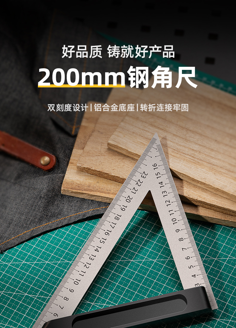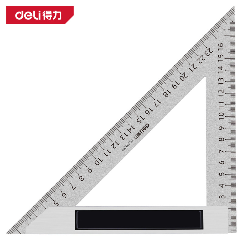 델리 DL303200 삼각형 눈금자 200mm 알루미늄 다이캐스트 직각 눈금자 목공 강판 눈금자 두꺼운 45도 강판 눈금자