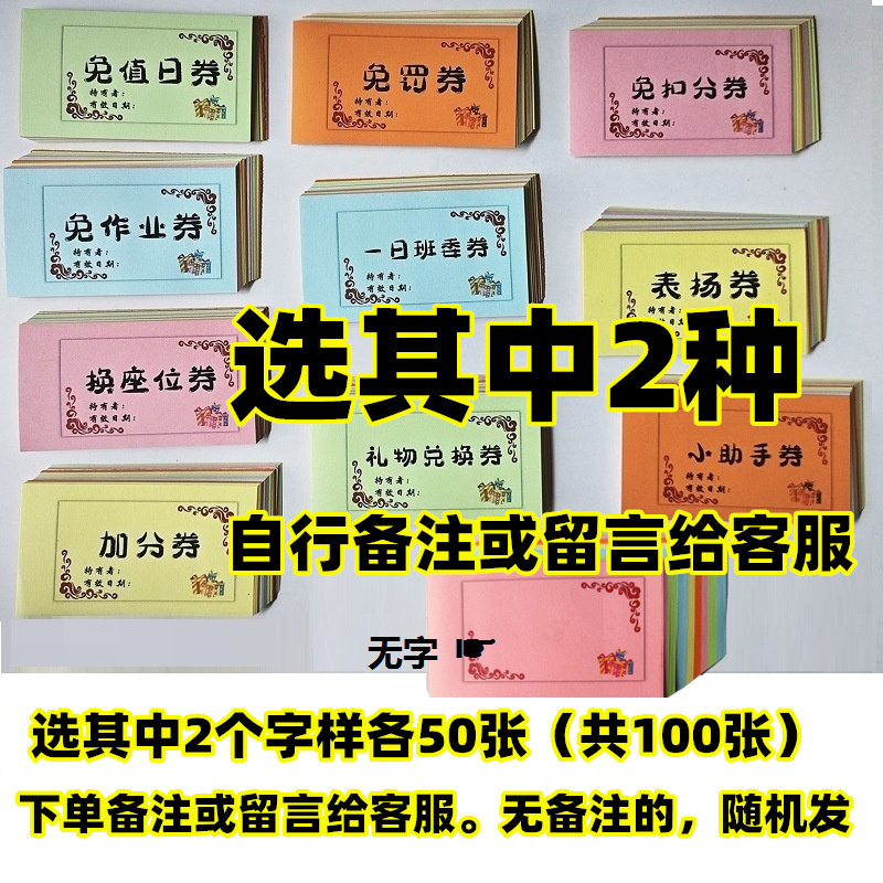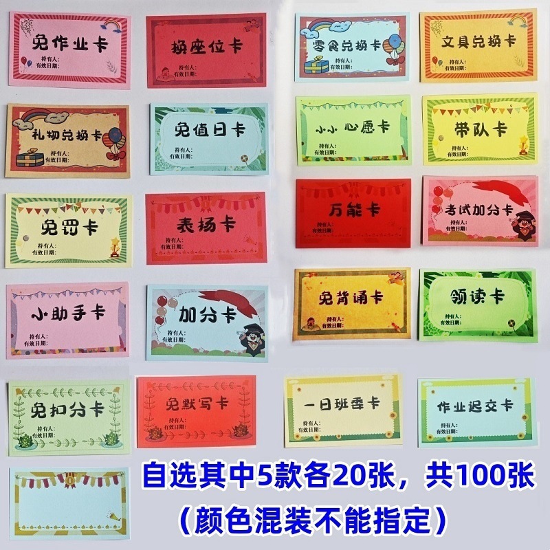 상품권, 숙제면제권, 컬러풀한 면제선물권 100장, 면제일권, 숙제면제 만능상품권