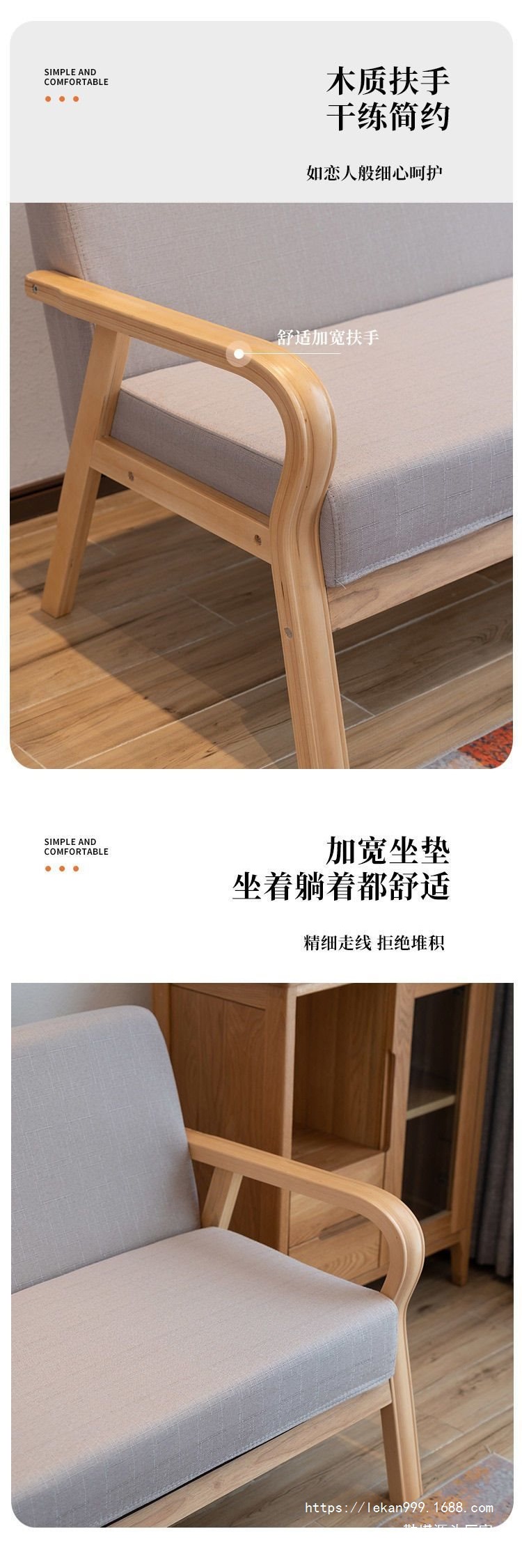 3인용 소형 거실 임대실을 위한 겸용 복고풍 원목 소파, 심플하고 모던한 1인용, 2인용, 3인용 소파스토어 가기
