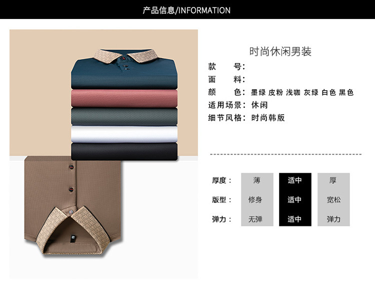 2025 남자 명암 칼라 짧은 소매 티셔츠 여름 새로운 폴로 셔츠 느슨한 패션 중년 아빠 바디 도매스토어 가기
