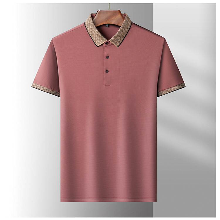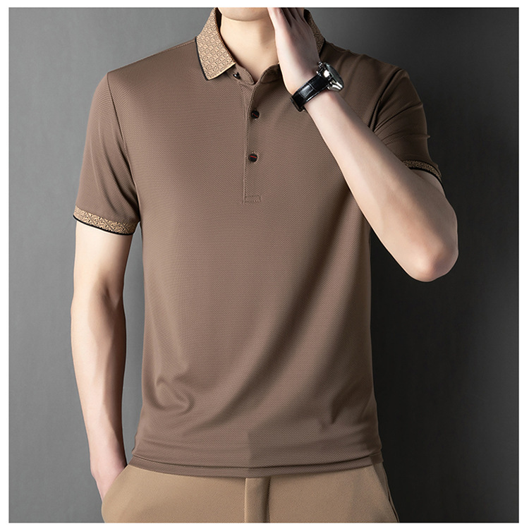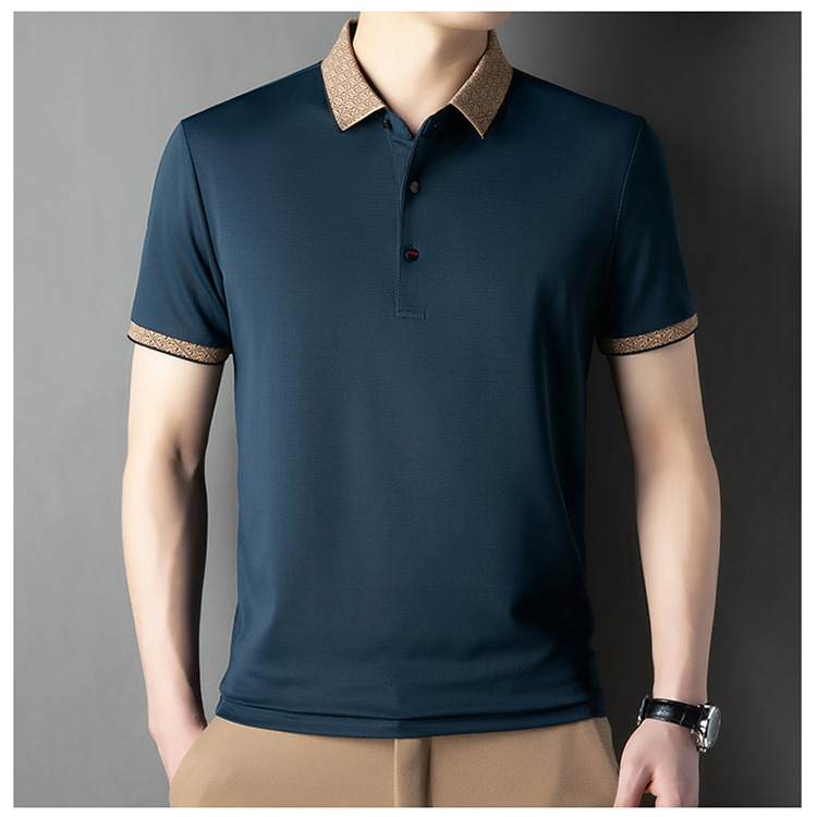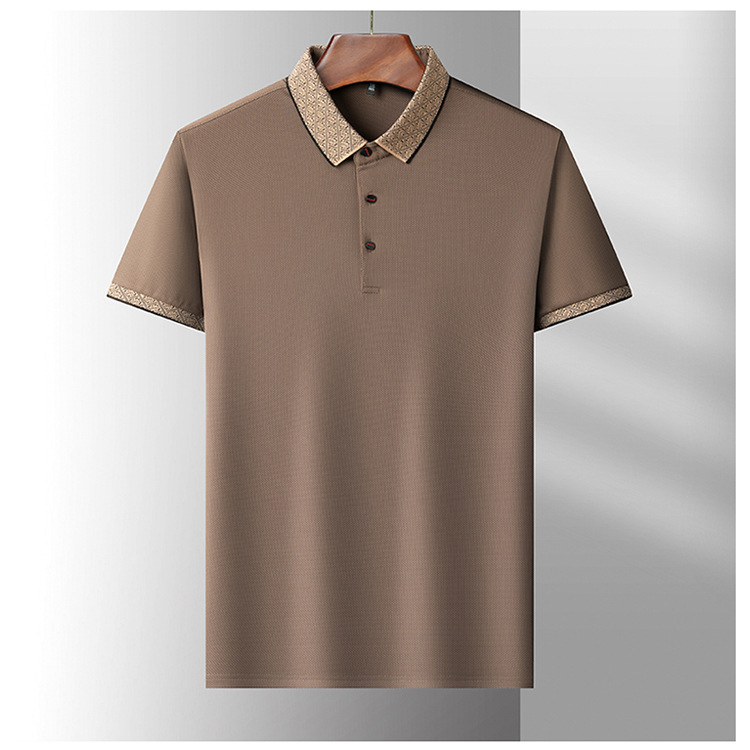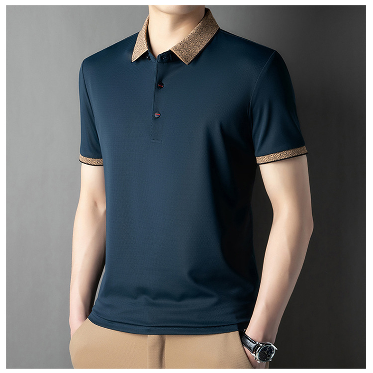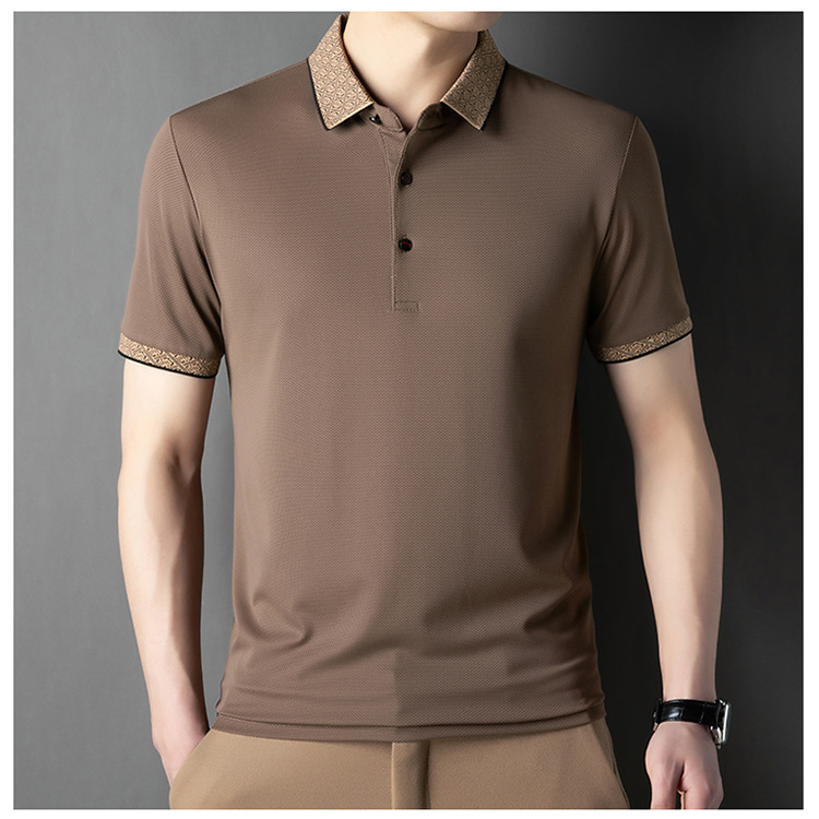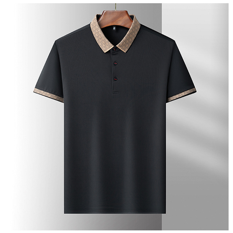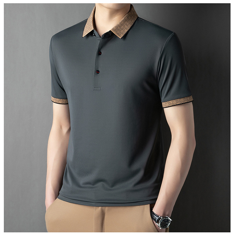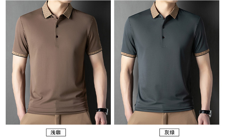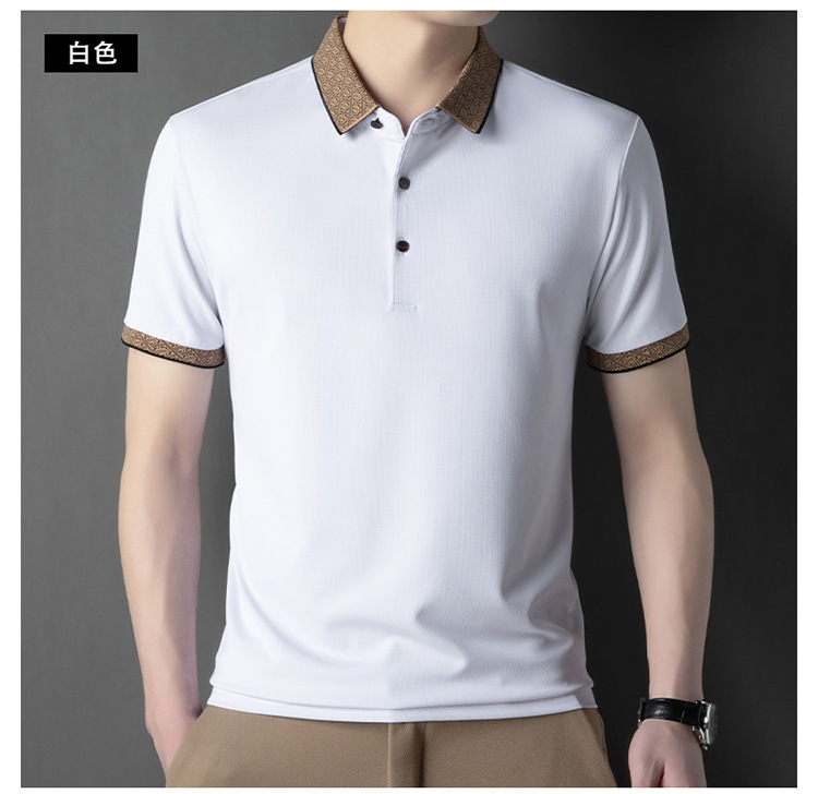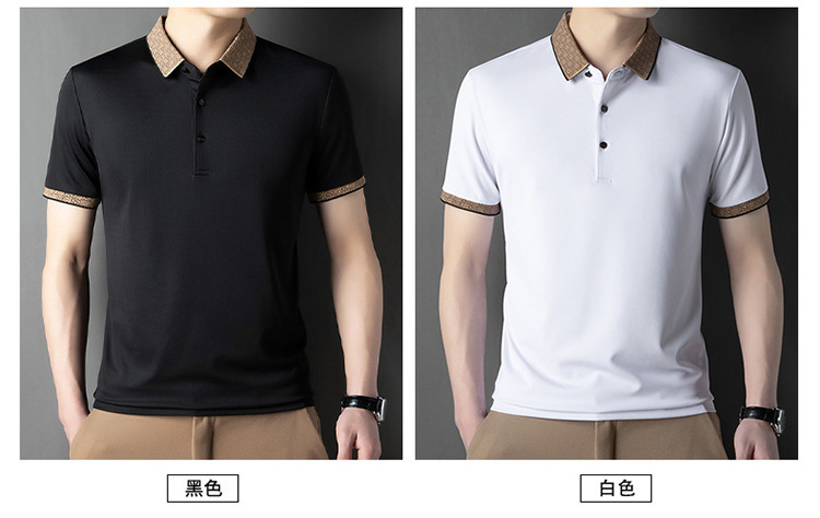 2025 남자 명암 칼라 짧은 소매 티셔츠 여름 새로운 폴로 셔츠 느슨한 패션 중년 아빠 바디 도매