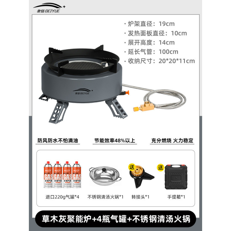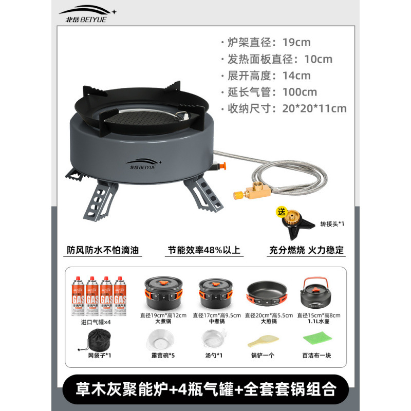 • 회색 에너지 집중 난로 + 가스 탱크 4개 + 냄비 세트 풀 세트