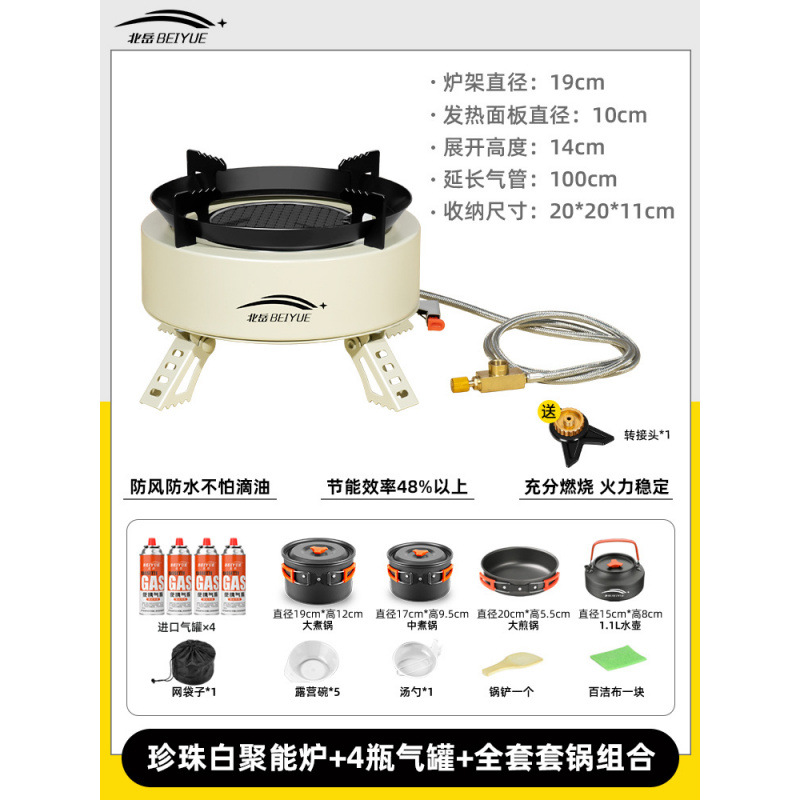 • 흰색 에너지 집중 난로 + 가스 탱크 4개 + 냄비 세트 풀 세트