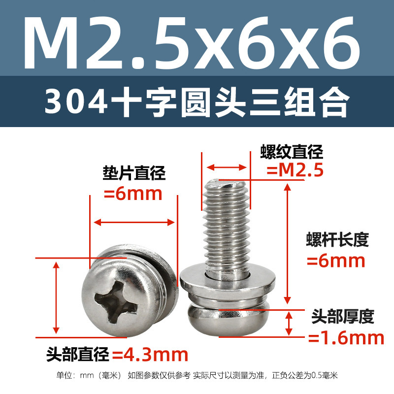 • M2.5*16*6(304 십자 둥근 머리 3개 조합)(10개)