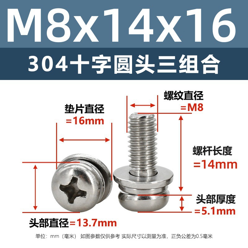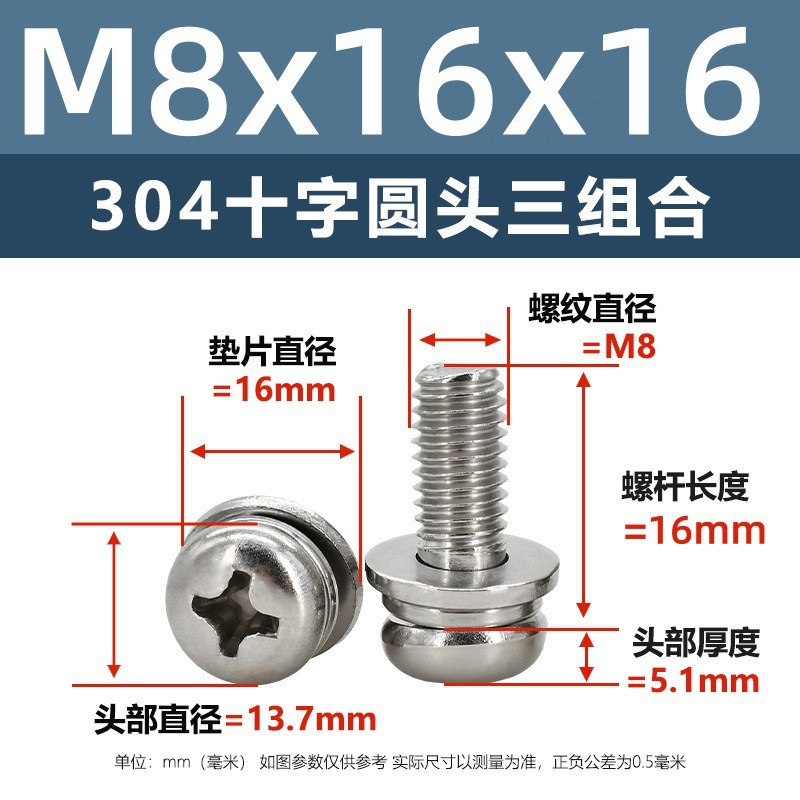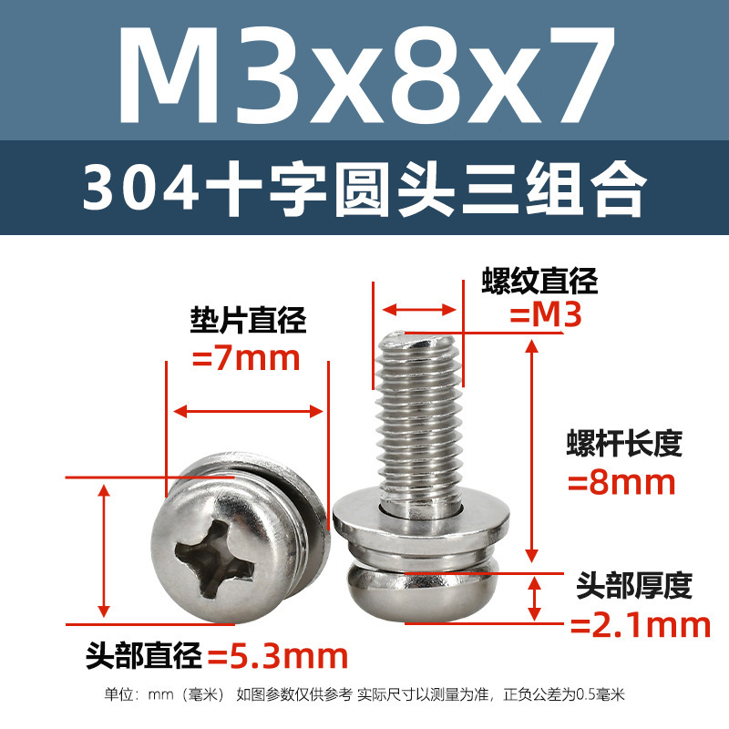 • M1.6*8*3.5 (304 십자 둥근 머리 3개 조합) (10개)