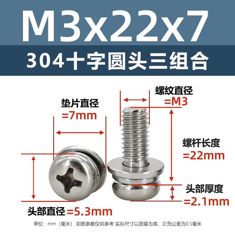 • M3*22*7(304 십자 둥근 머리 3개 조합)(10개)