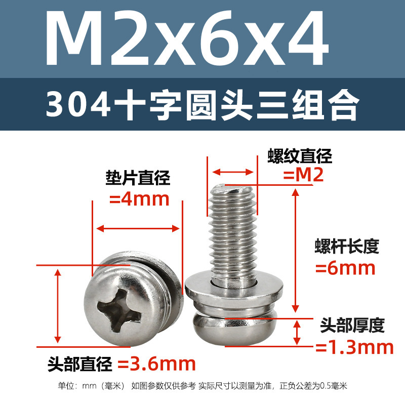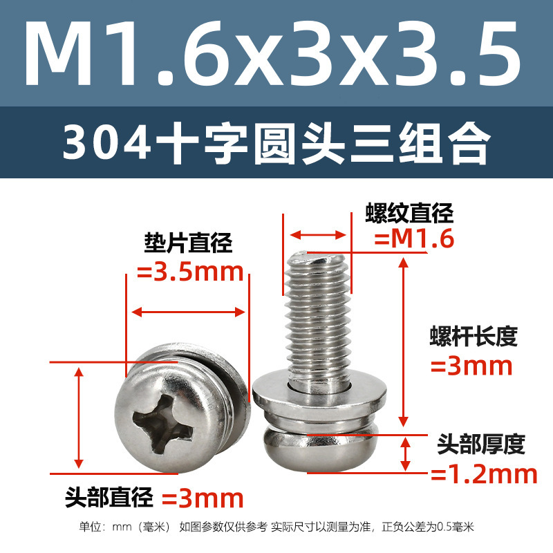 • M1.6*4*3.5 (304 십자 둥근 머리 3개 조합) (10개)