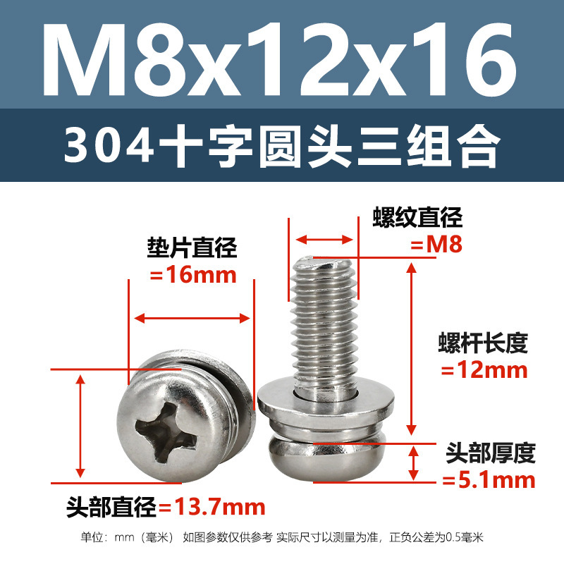 • M8*12*16(304 십자 둥근 머리 3개 조합)(10개)