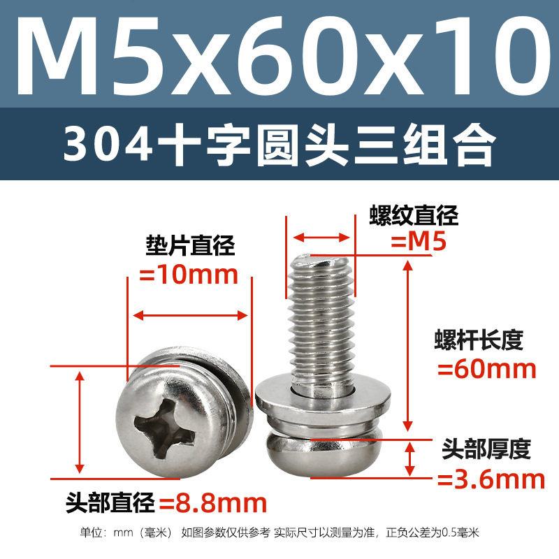 • M5*60*10 (304 십자 둥근 머리 3개 조합) (10개)