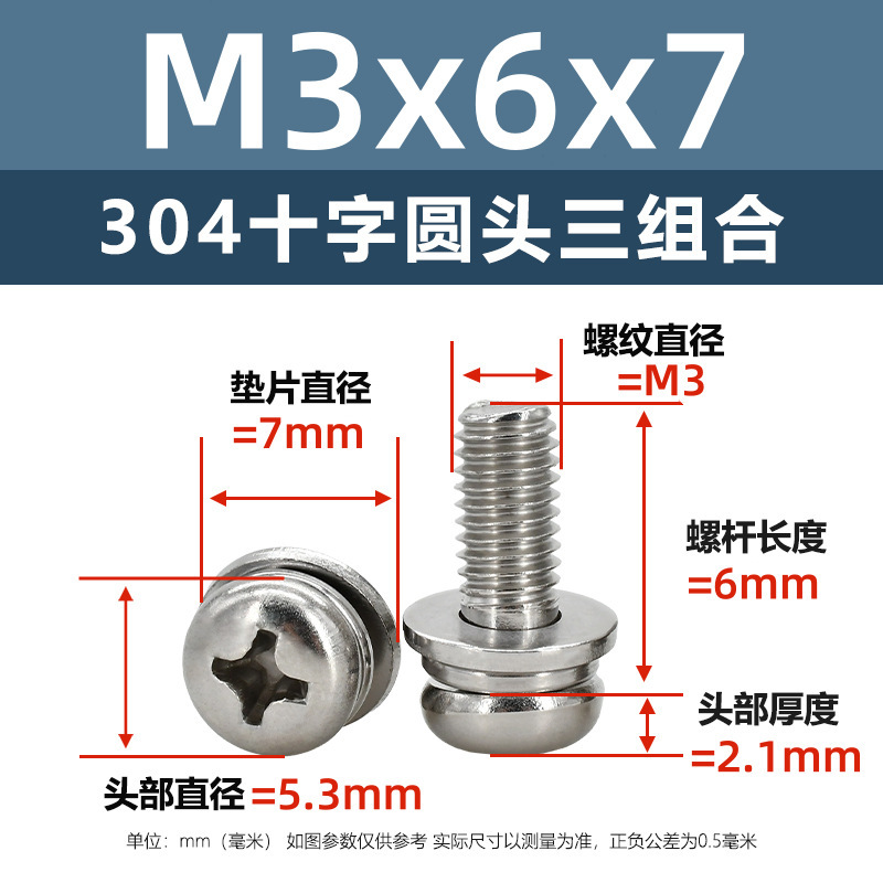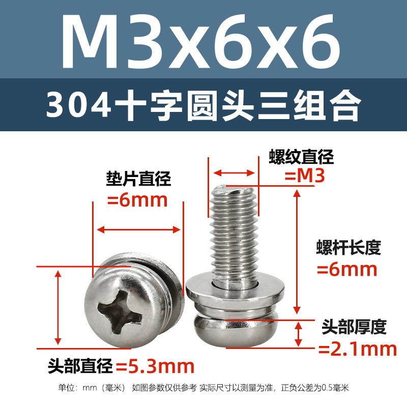 • M1.6*5*3.5 (304 십자 둥근 머리 3개 조합) (10개)