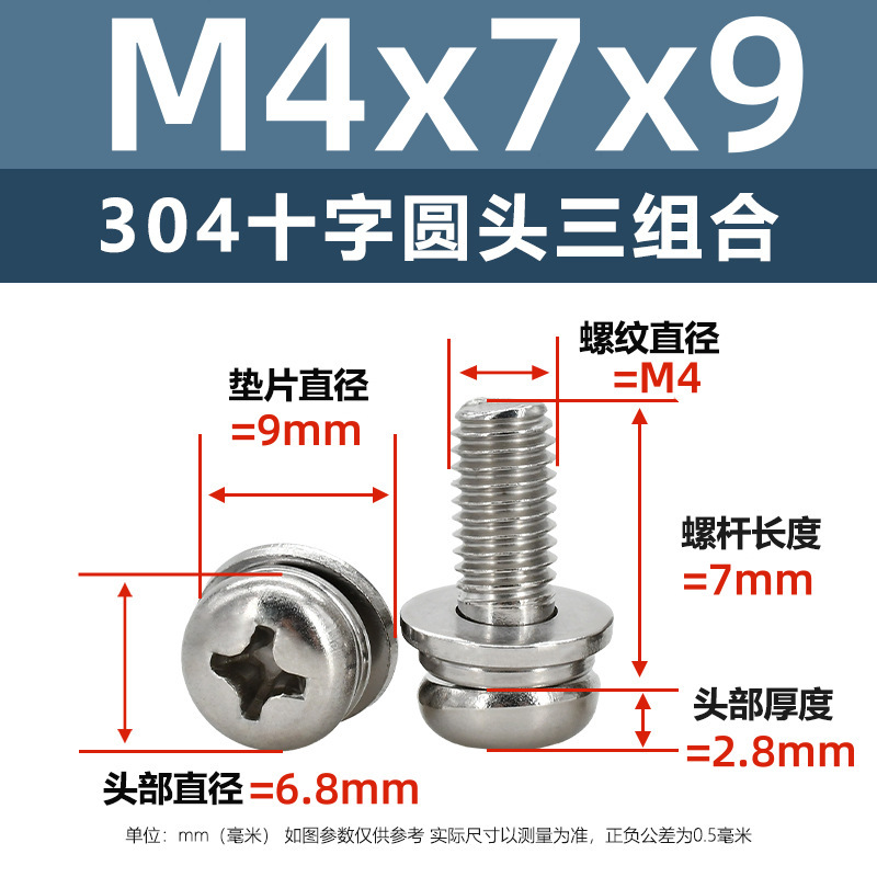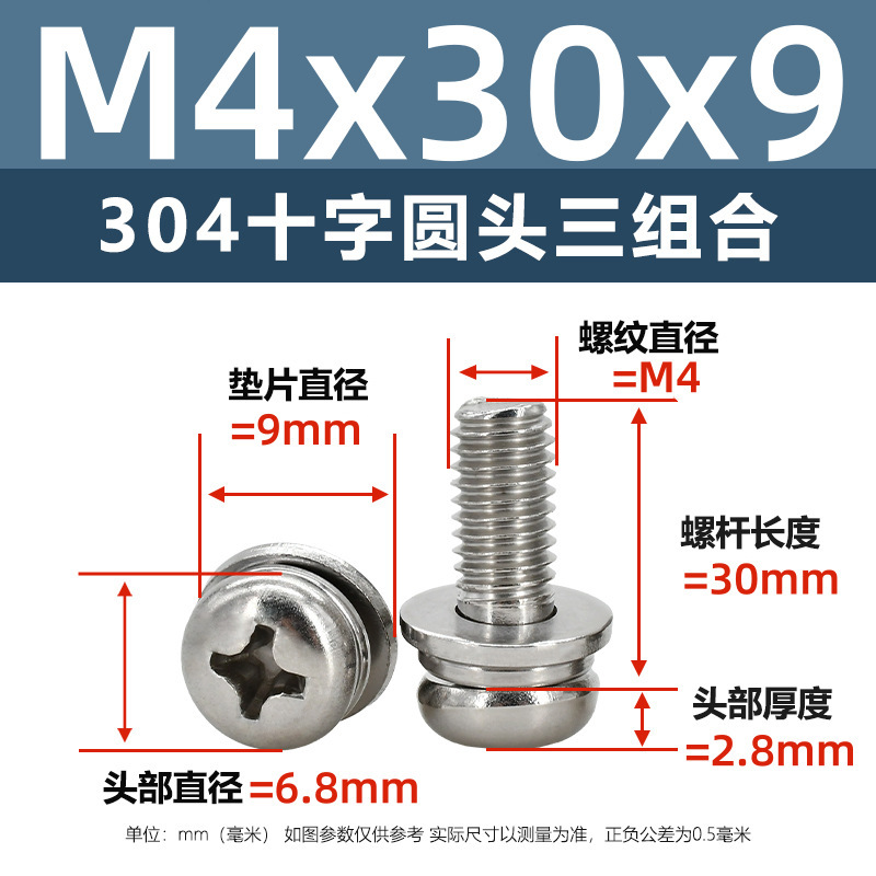 • M4*30*9 (304 십자 둥근 머리 3개 조합) (10개)