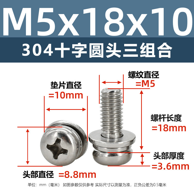 • M5*50*10 (304 십자 둥근 머리 3개 조합) (10개)