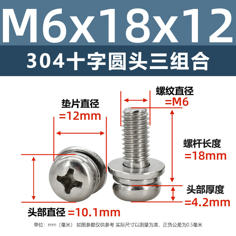 • M6*40*12 (304 십자 둥근 머리 3개 조합) (10개)