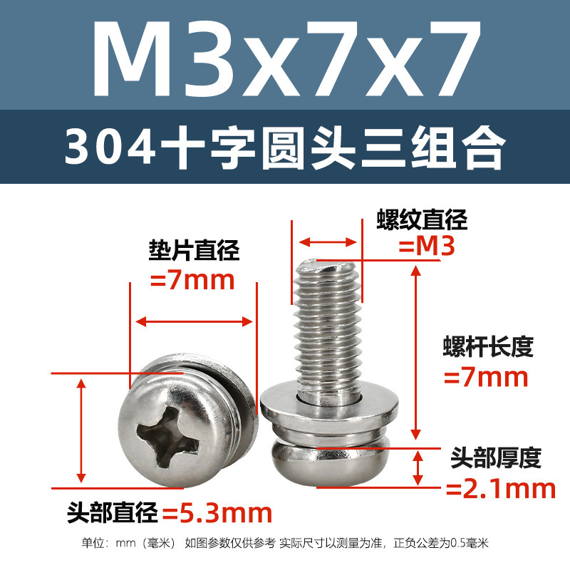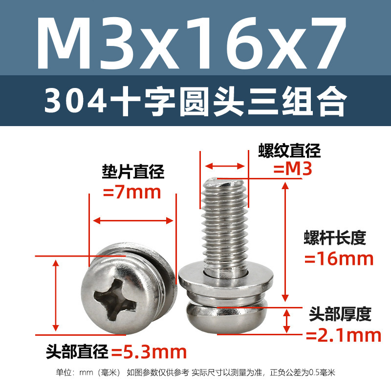 • M3*16*7(304 십자 둥근 머리 3개 조합)(10개)