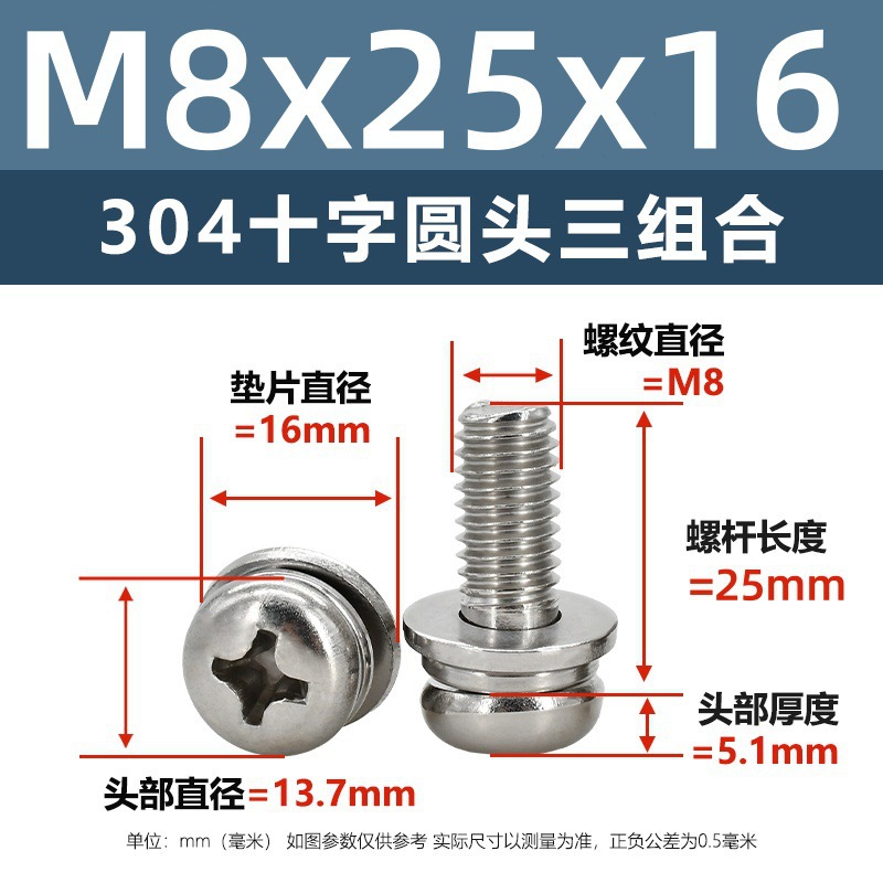 • M8*25*16(304 십자 둥근 머리 3개 조합)(10개)