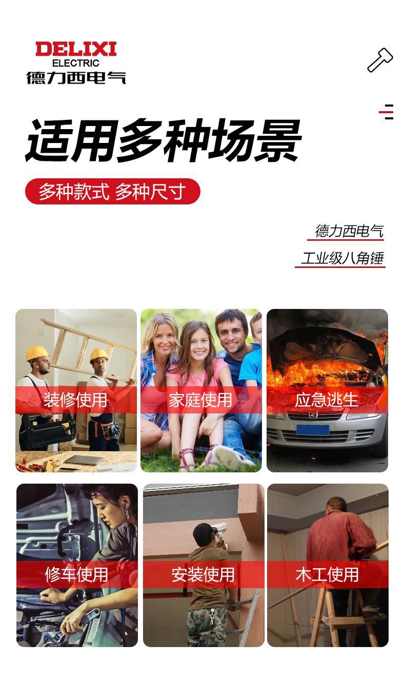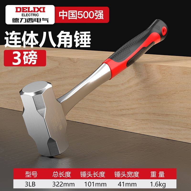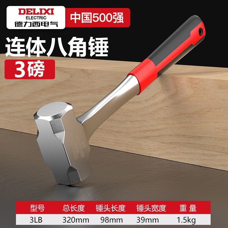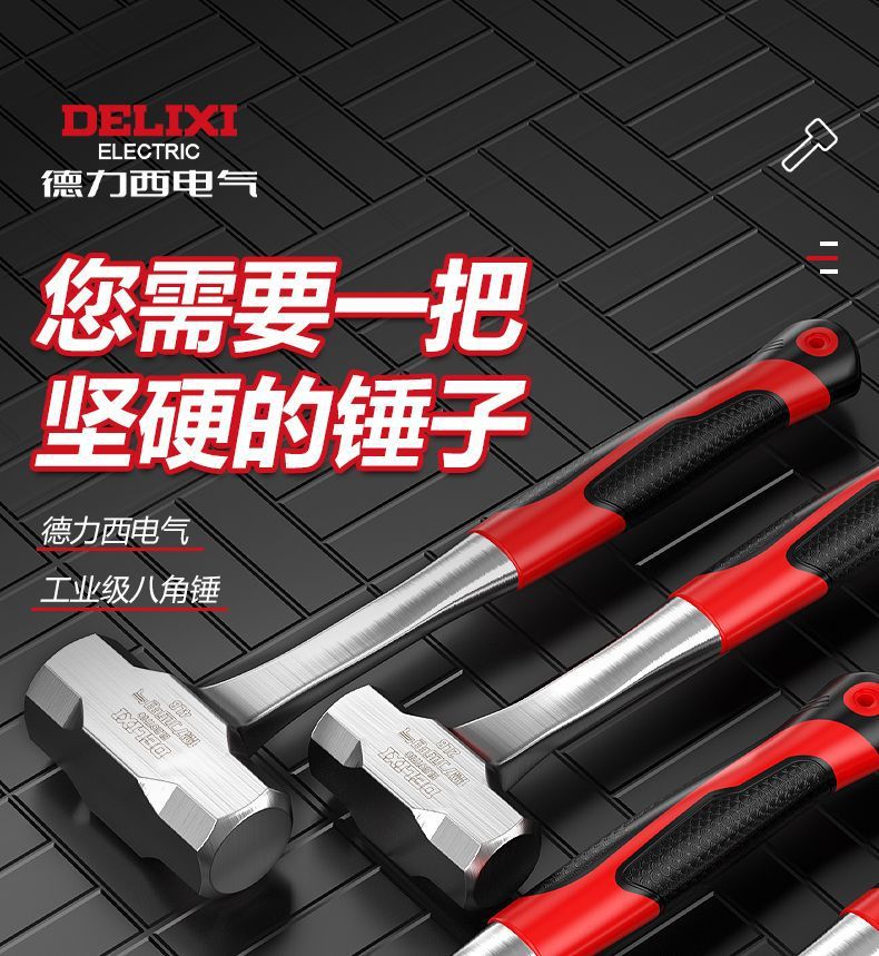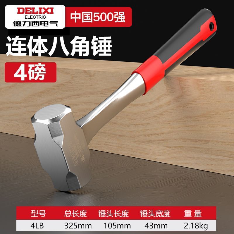 Delixi Electric 일체형 팔각형 망치, 헤드 없는 일체형 망치, 건설 현장용 중량 벽 파괴 망치, 석공 망치스토어 가기