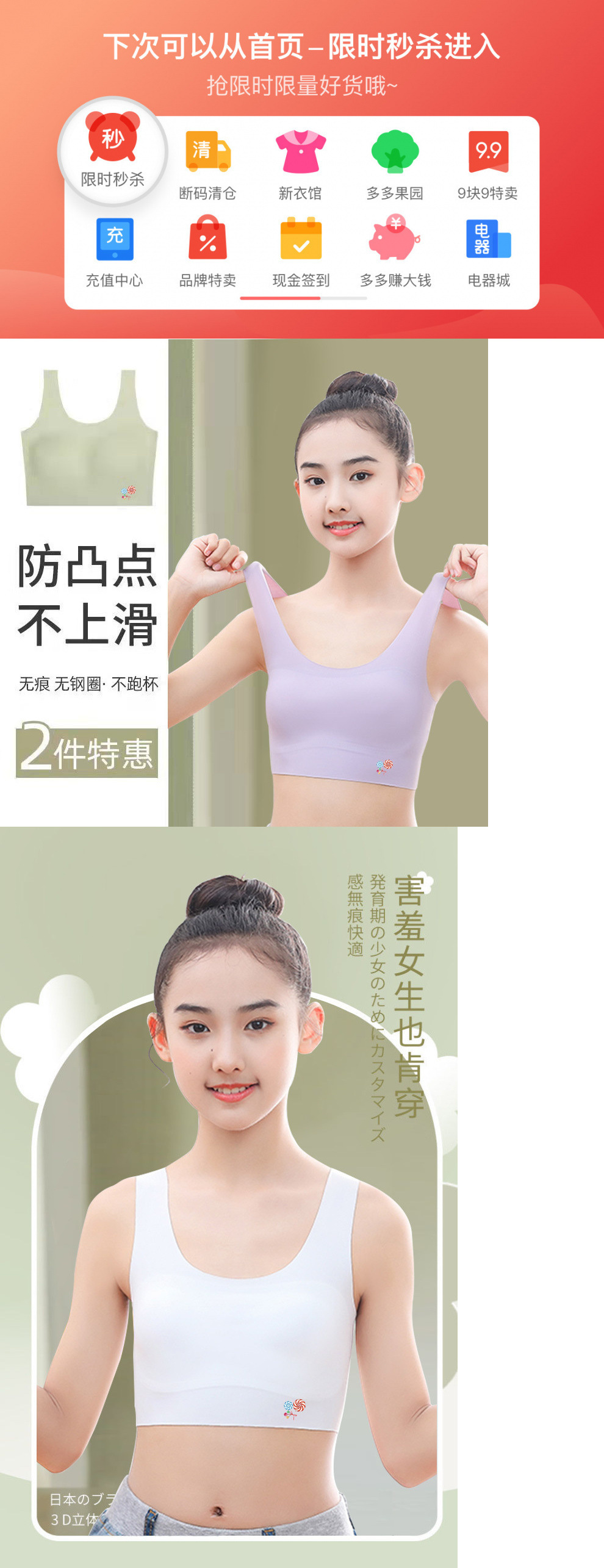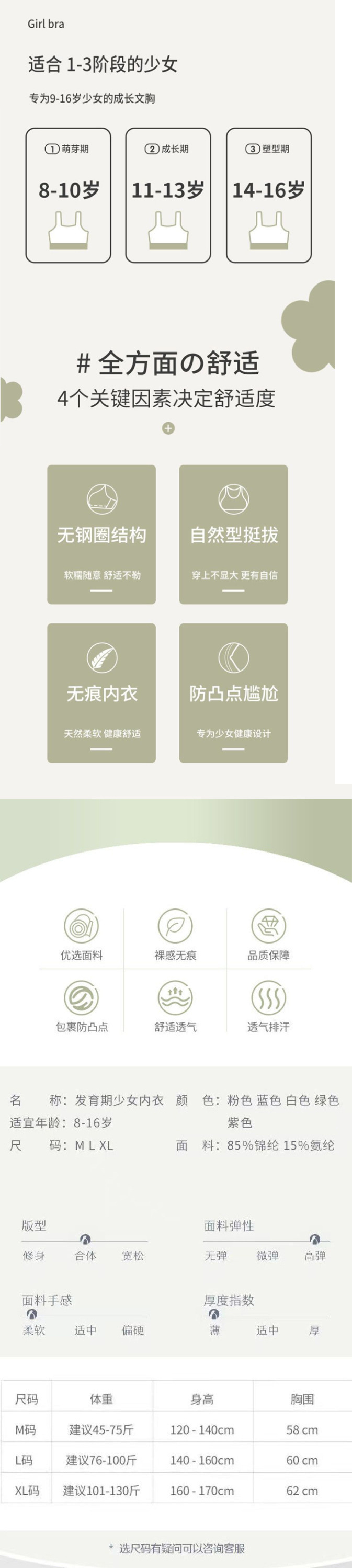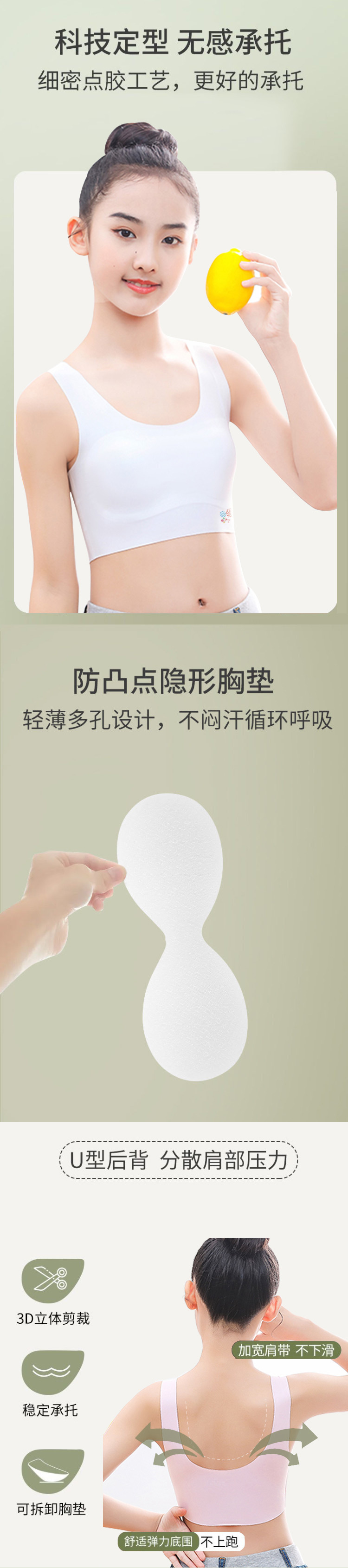 발달기, 중학생, 고등학생, 여아, 사춘기 여아, 여름용 브랜드 심리스 여아 속옷