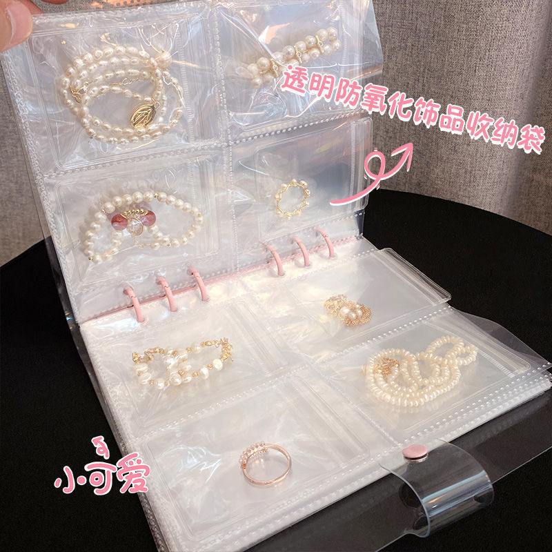 업그레이드된 보석 보관 도서 PVC 밀봉 가방 귀걸이 항산화 버클 두꺼운 대용량 루스 리프