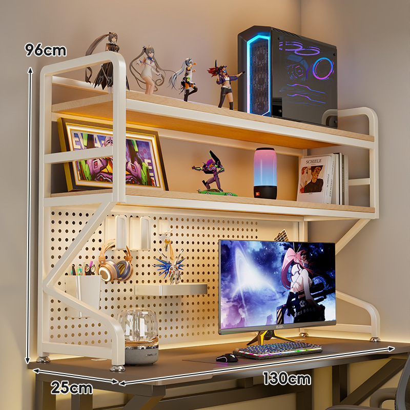 • 더블 레이어 - 화이트 선반 + 화이트 보드 - 길이 130cm [추가 20개 세트 + 자석 버클]